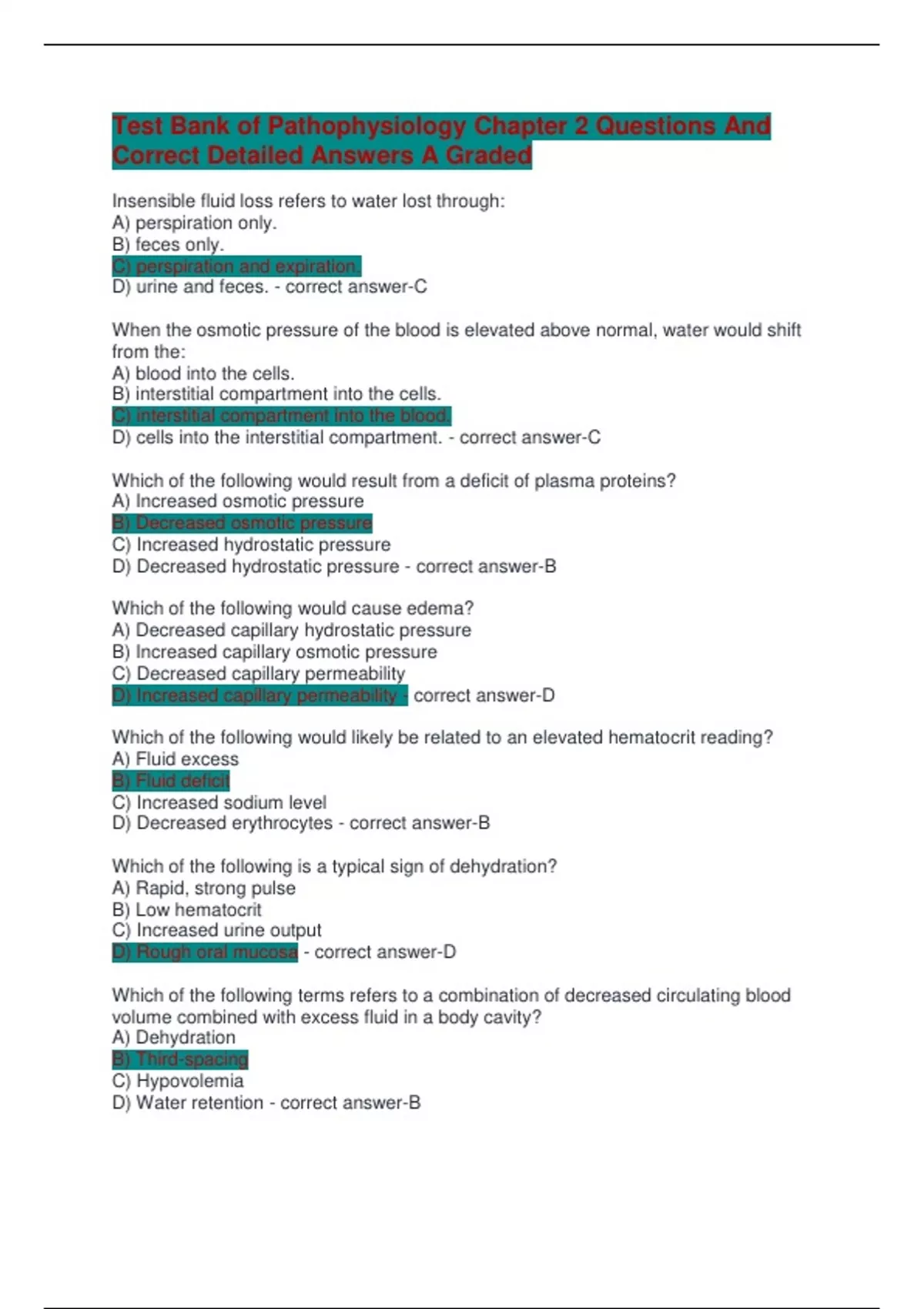 Test Bank of Pathophysiology Chapter 2 Questions And