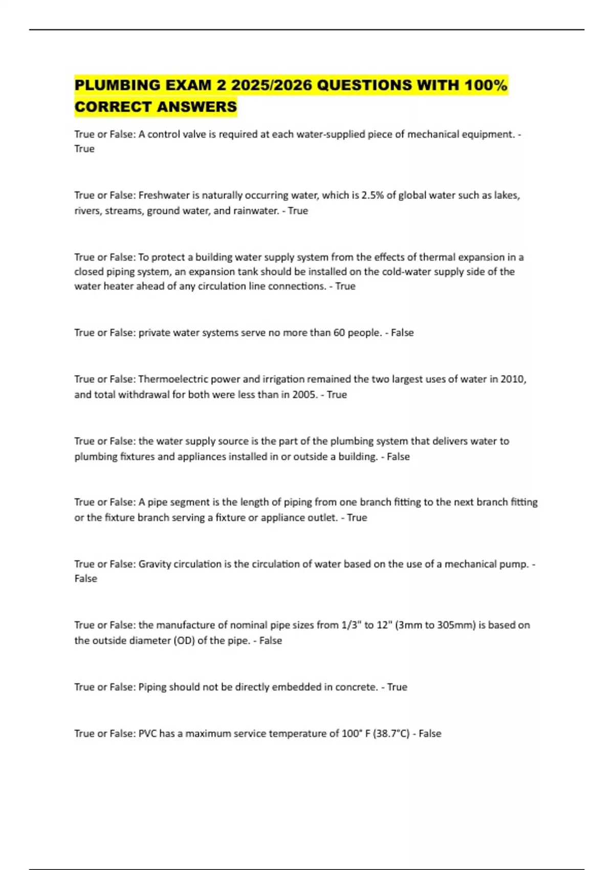 True or False: PVC has a maximum service temperature of 100° F (38.7°C) - False