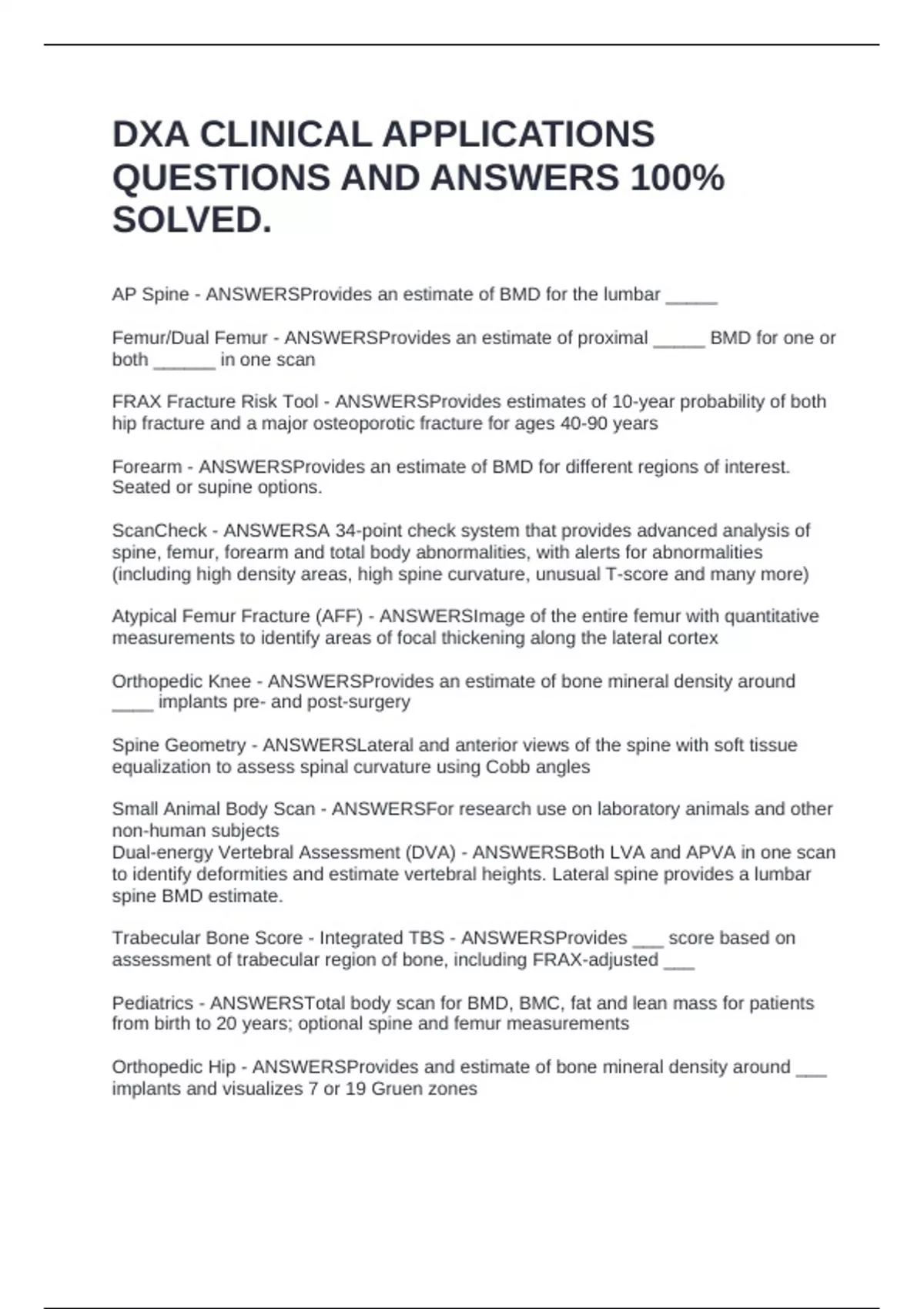 Orthopedic Knee - ANSWERSProvides an estimate of bone mineral density around