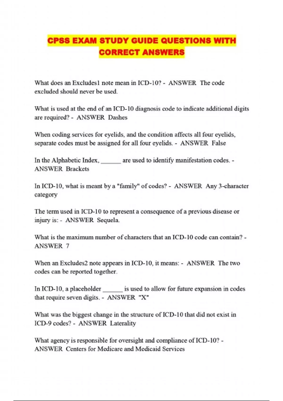 CPSS EXAM STUDY GUIDE QUESTIONS WITH CORRECT ANSWERS....
