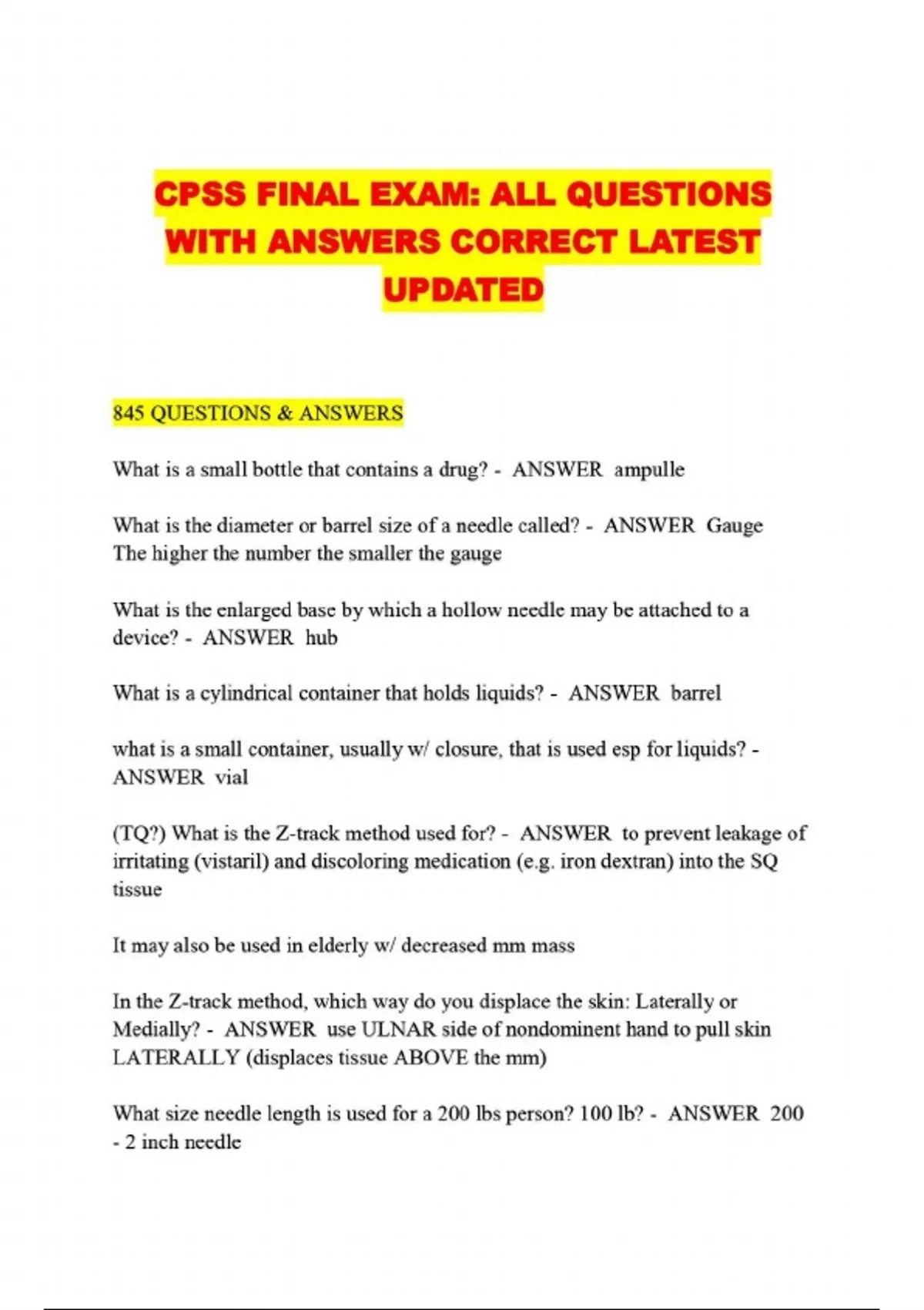 CPSS FINAL EXAM; ALL QUESTIONS WITH ANSWERS CORRECT LATEST UPDATED