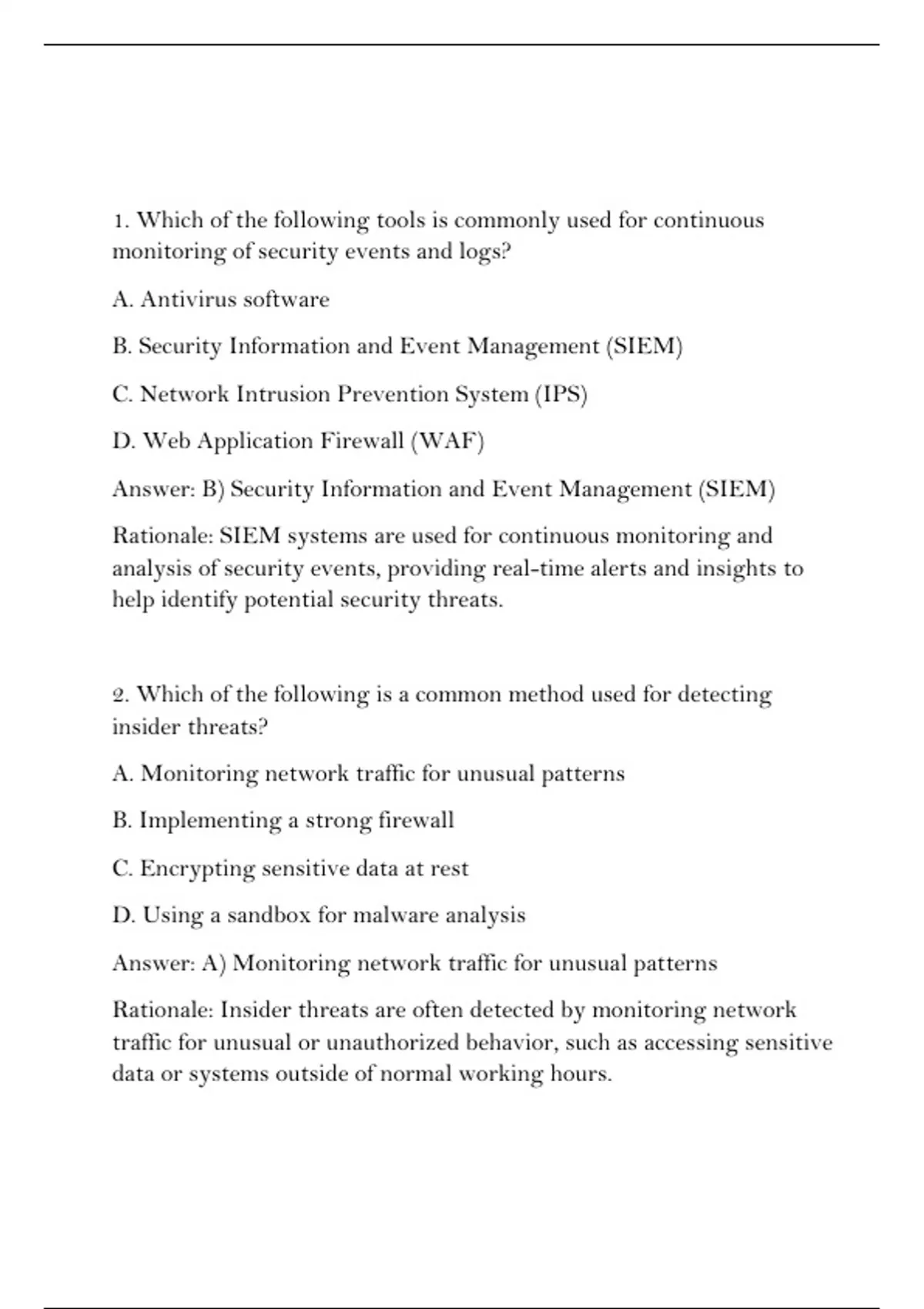 Rationale: SIEM systems are used for continuous monitoring and
