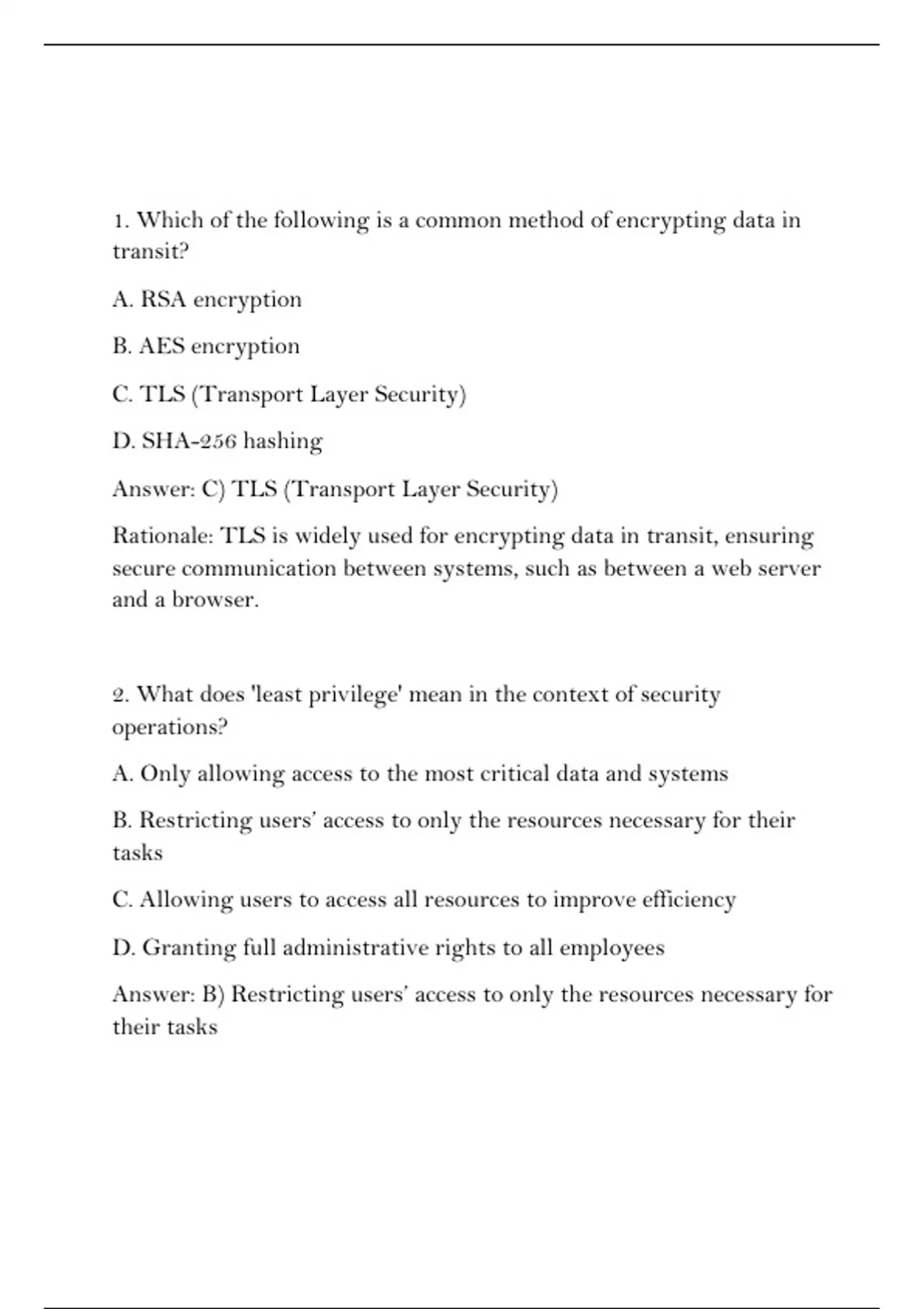 Rationale: TLS is widely used for encrypting data in transit, ensuring