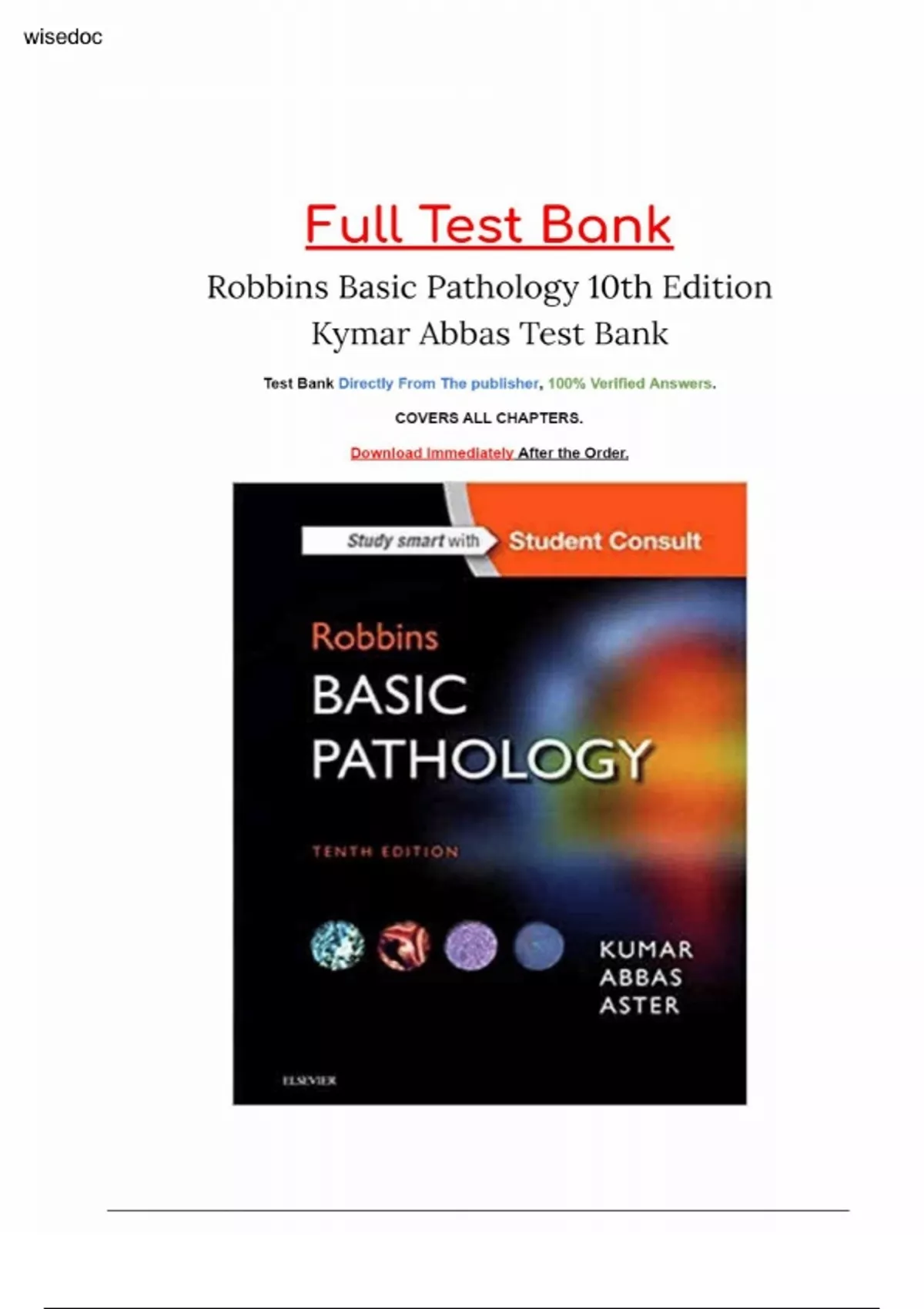 Test Bank - Robbins Basic Pathology 10th Edition Kymar Abba | Complete Chapters | Full Guide Assured A+|Latest edition