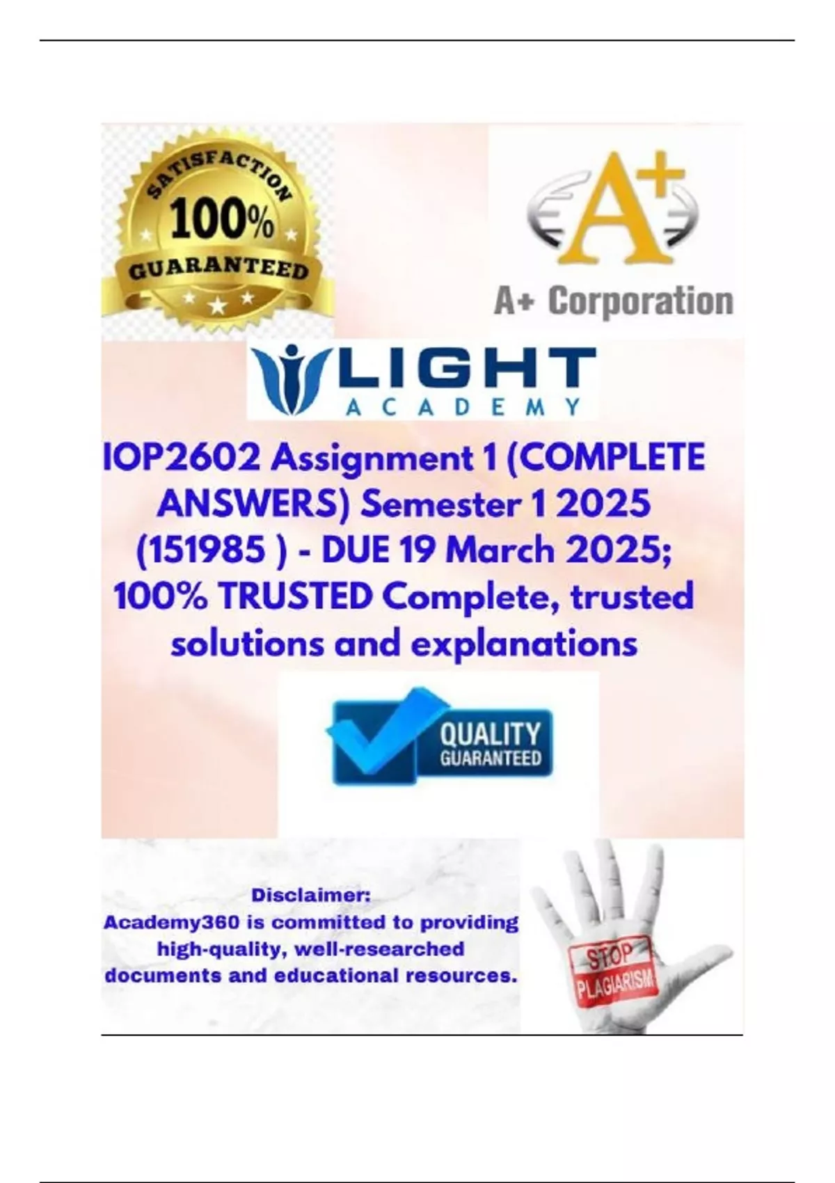 IOP2602 Assignment 1 (COMPLETE ANSWERS) Semester 1 2025 (151985 ) - DUE 19 March 2025; 100% TRUSTED Complete, trusted solutions and explanations