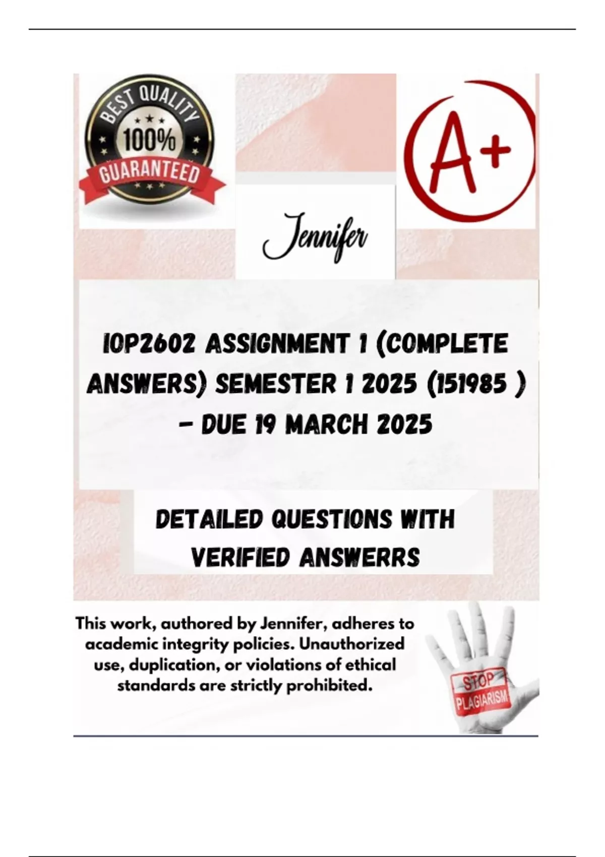 ,IOP2602 Assignment 1 (COMPLETE ANSWERS) Semester