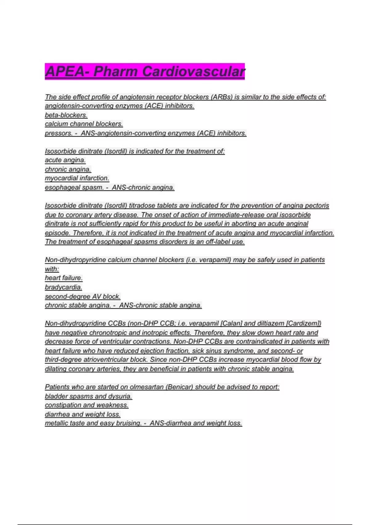 pressors. - ANS-angiotensin-converting enzymes (ACE) inhibitors.