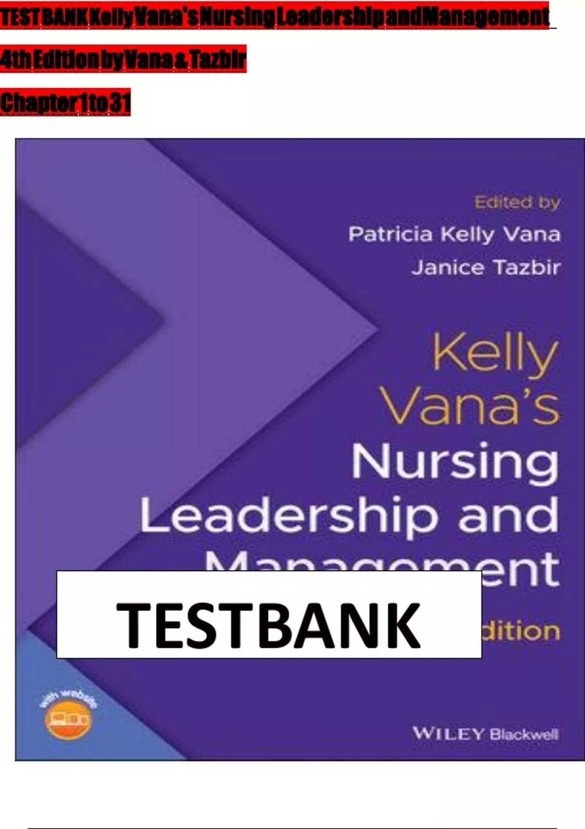 TEST BANK For Kelly Vana's Nursing Leadership and Management 4th Edition by Vana & Tazbir, ISBN: 9781119596615, All 31 Chapters Covered, Verified