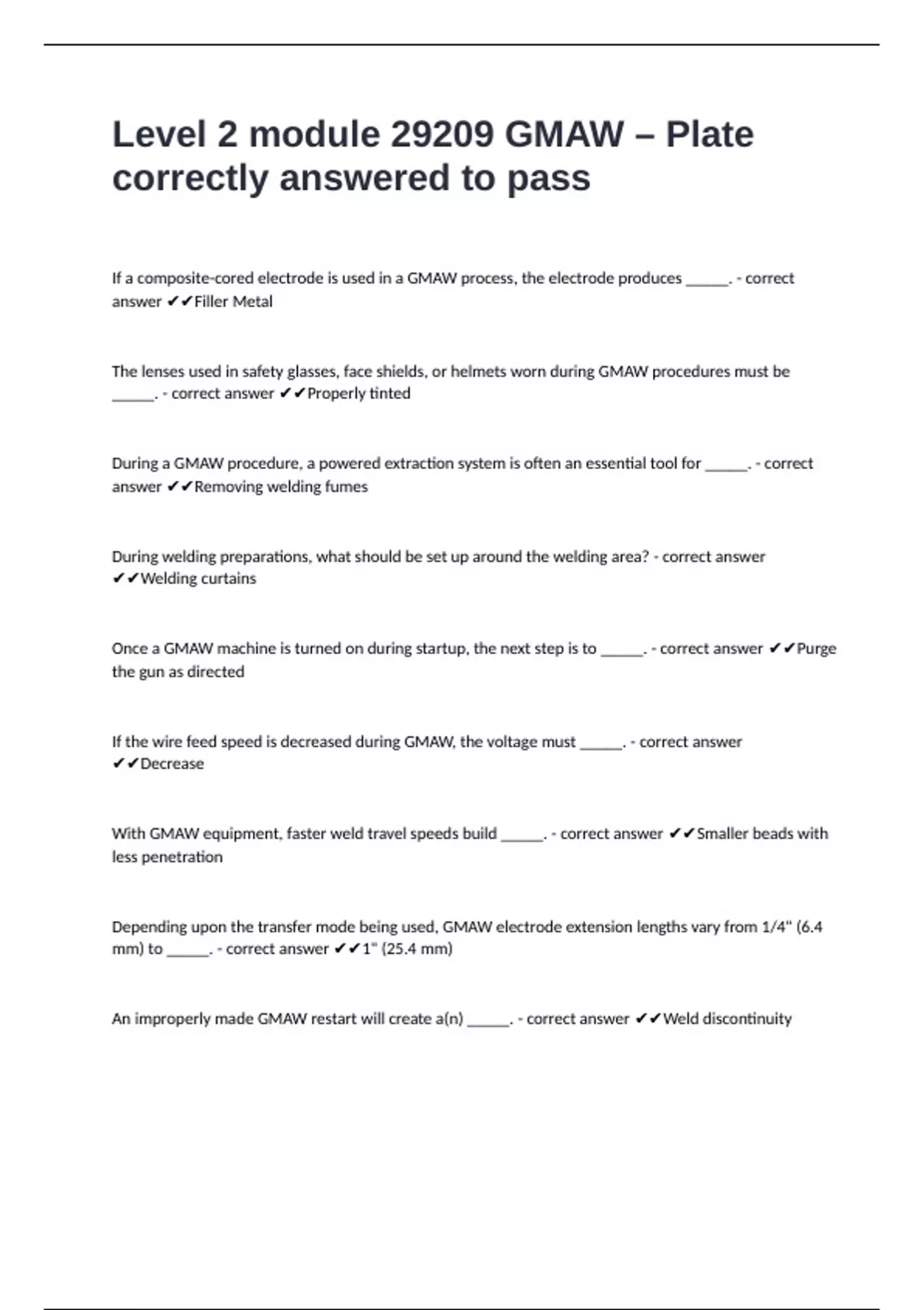 Level 2 module 29209 GMAW – Plate correctly answered to pass