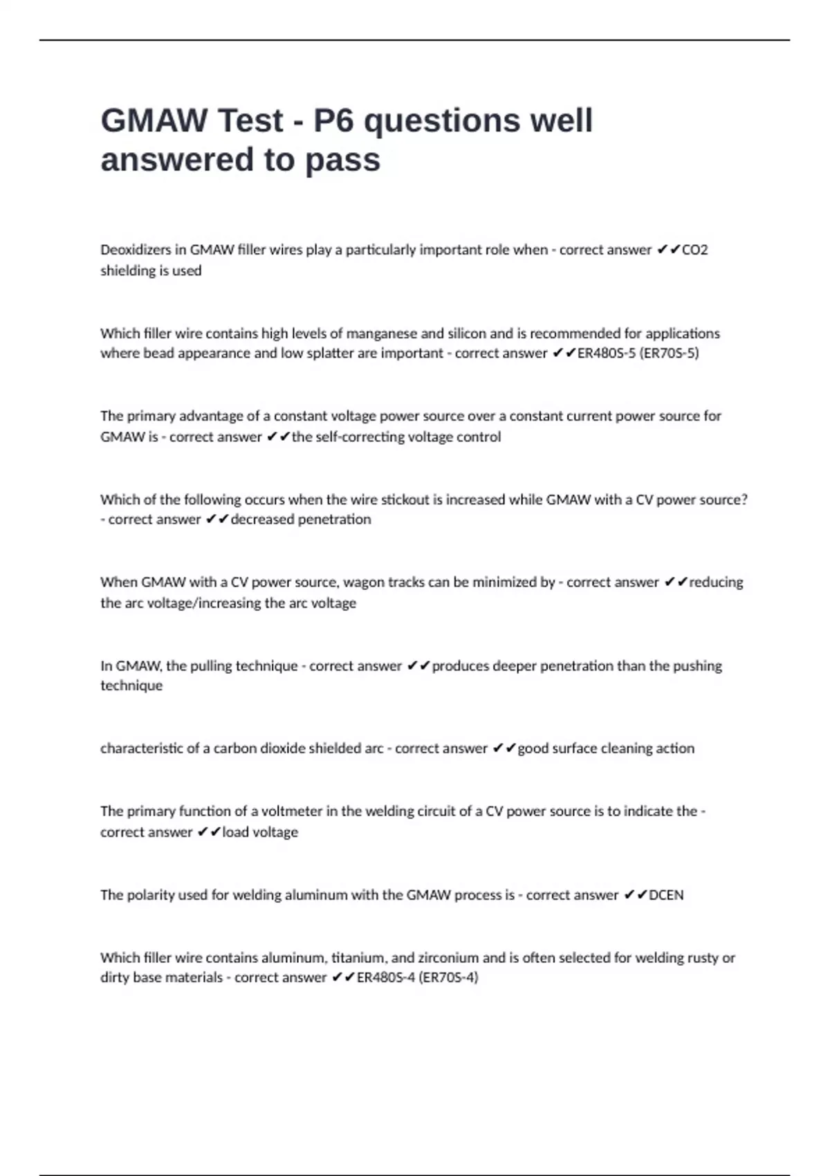 GMAW Test - P6 questions well answered to pass