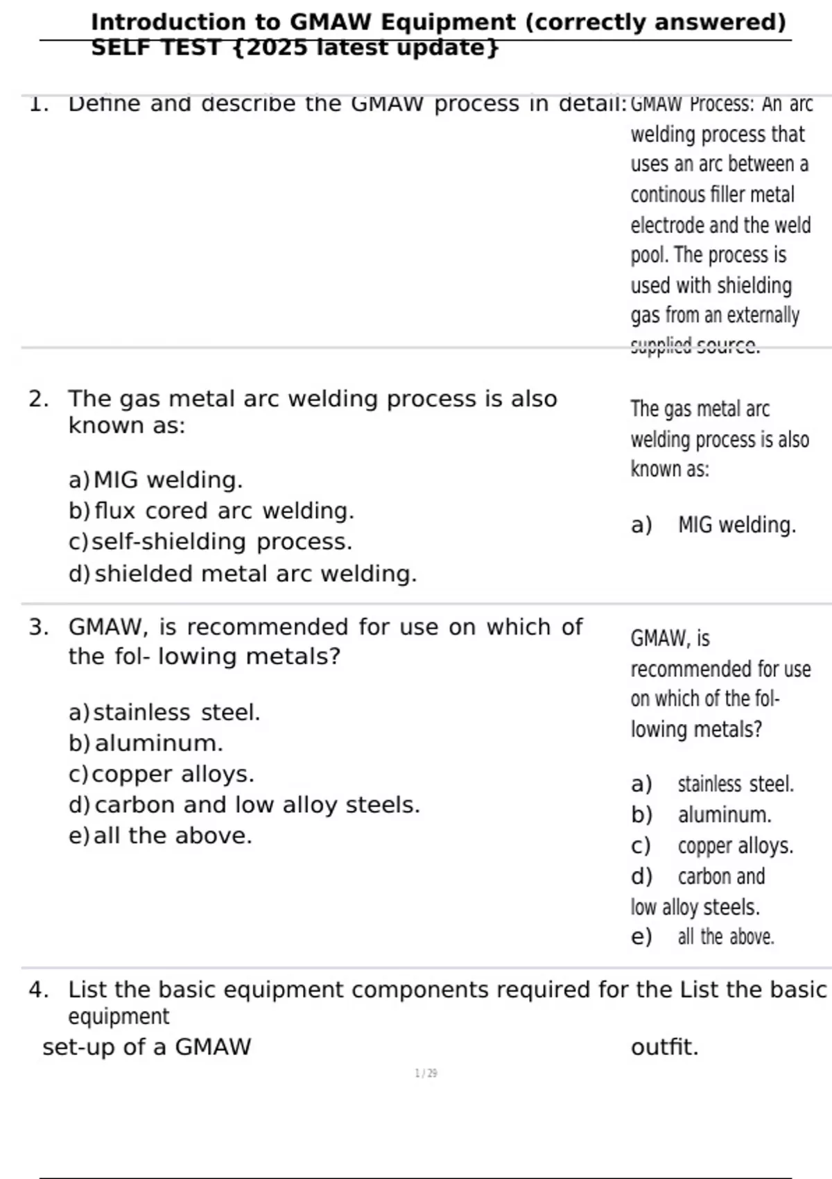 , Introduction to GMAW Equipment (correctly answered)