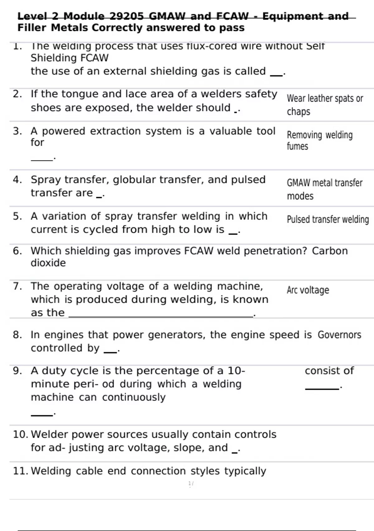 Level 2 Module 29205 GMAW and FCAW - Equipment and Filler Metals Correctly answered to pass