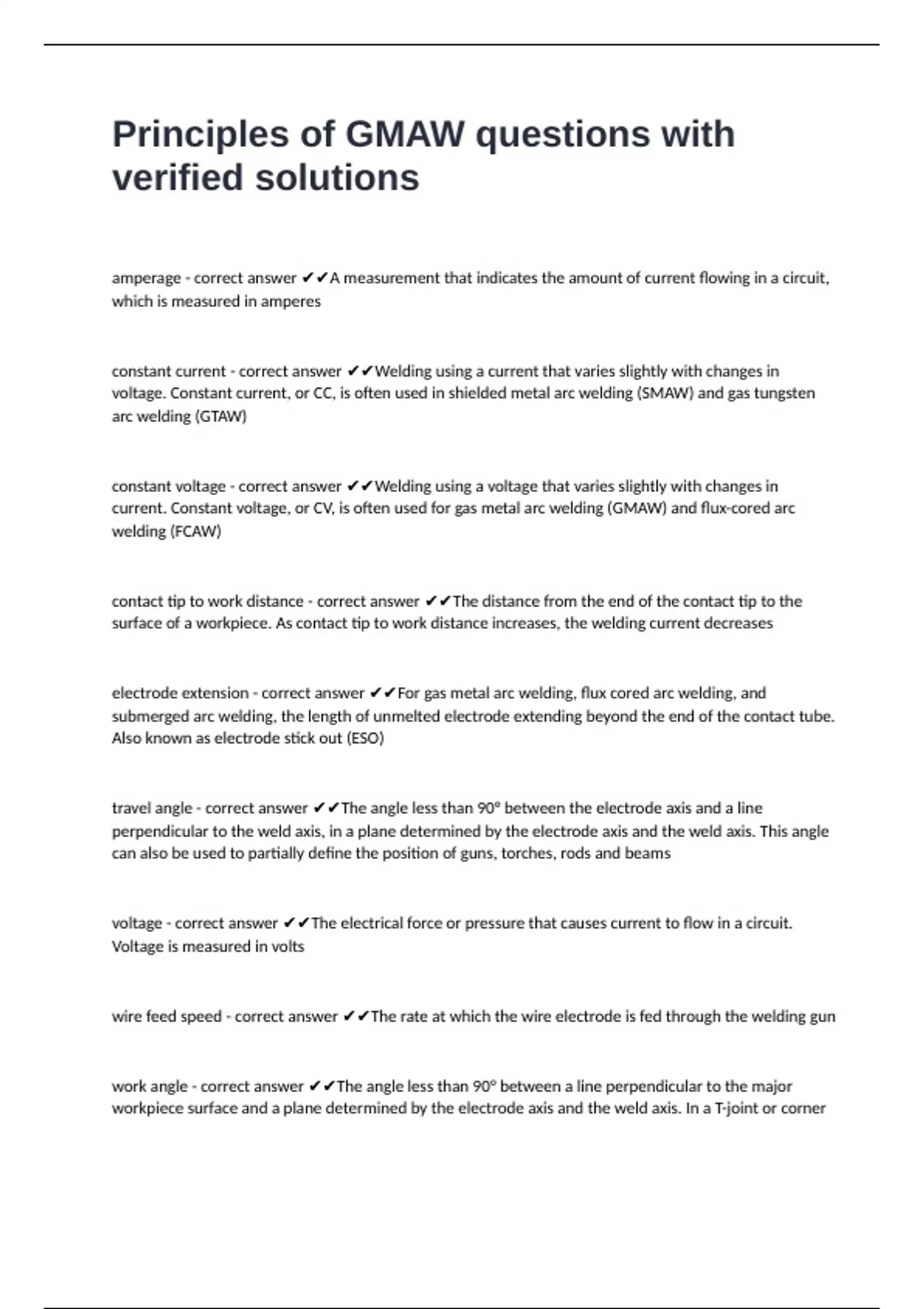 travel angle - correct answer ✔✔The angle less than 90° between the electrode axis and a line