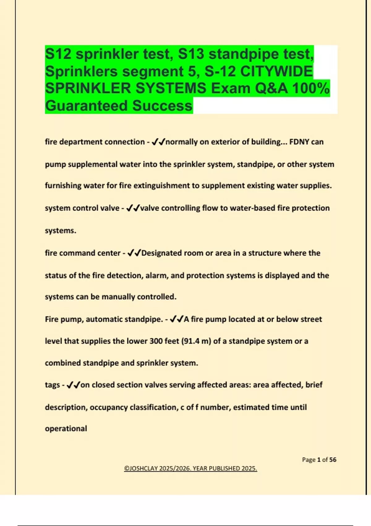 SPRINKLER SYSTEMS Exam Q&A 100%