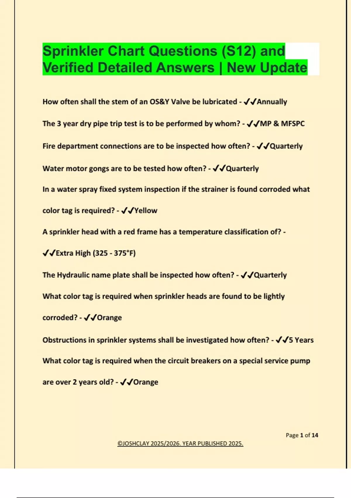 Sprinkler Chart Questions (S12) and Verified Detailed Answers | New Update