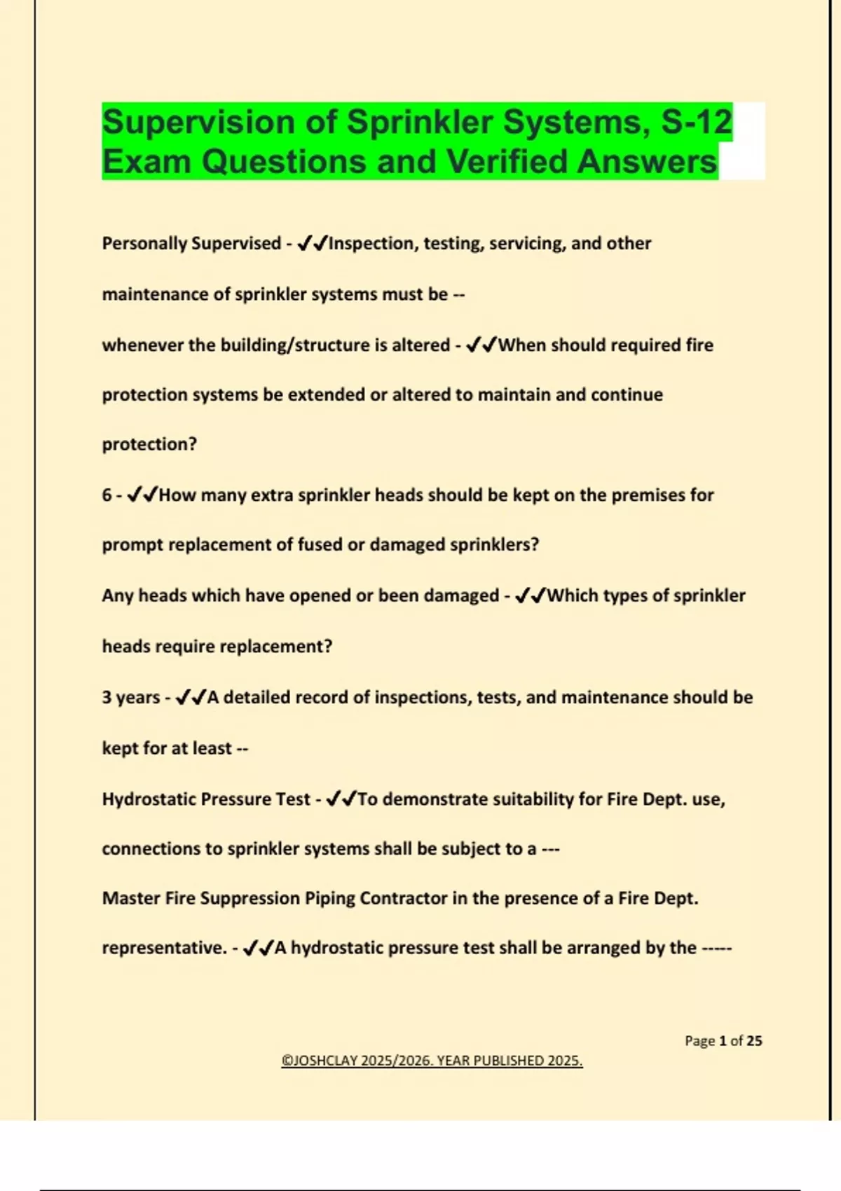 Personally Supervised - ✔✔Inspection, testing, servicing, and other