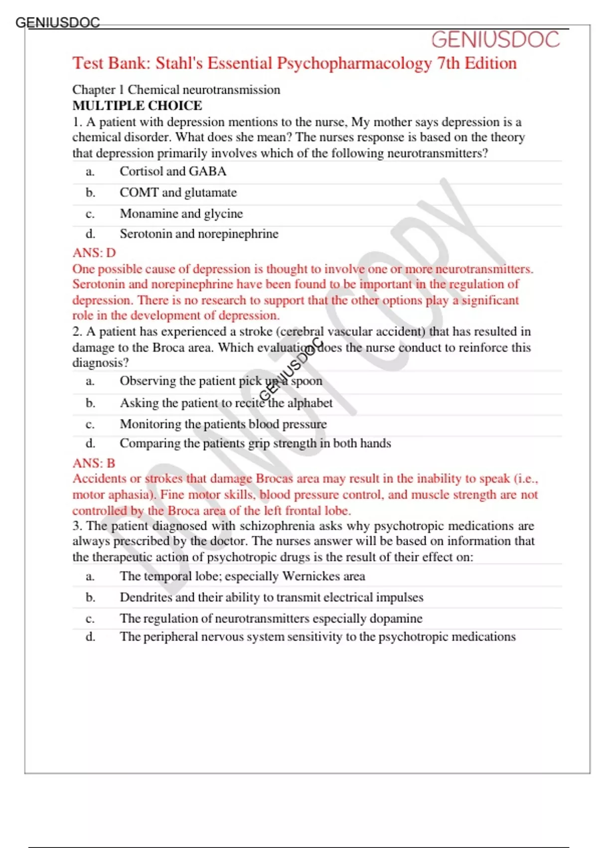 Test Bank: Stahl's Essential Psychopharmacology 7th Edition