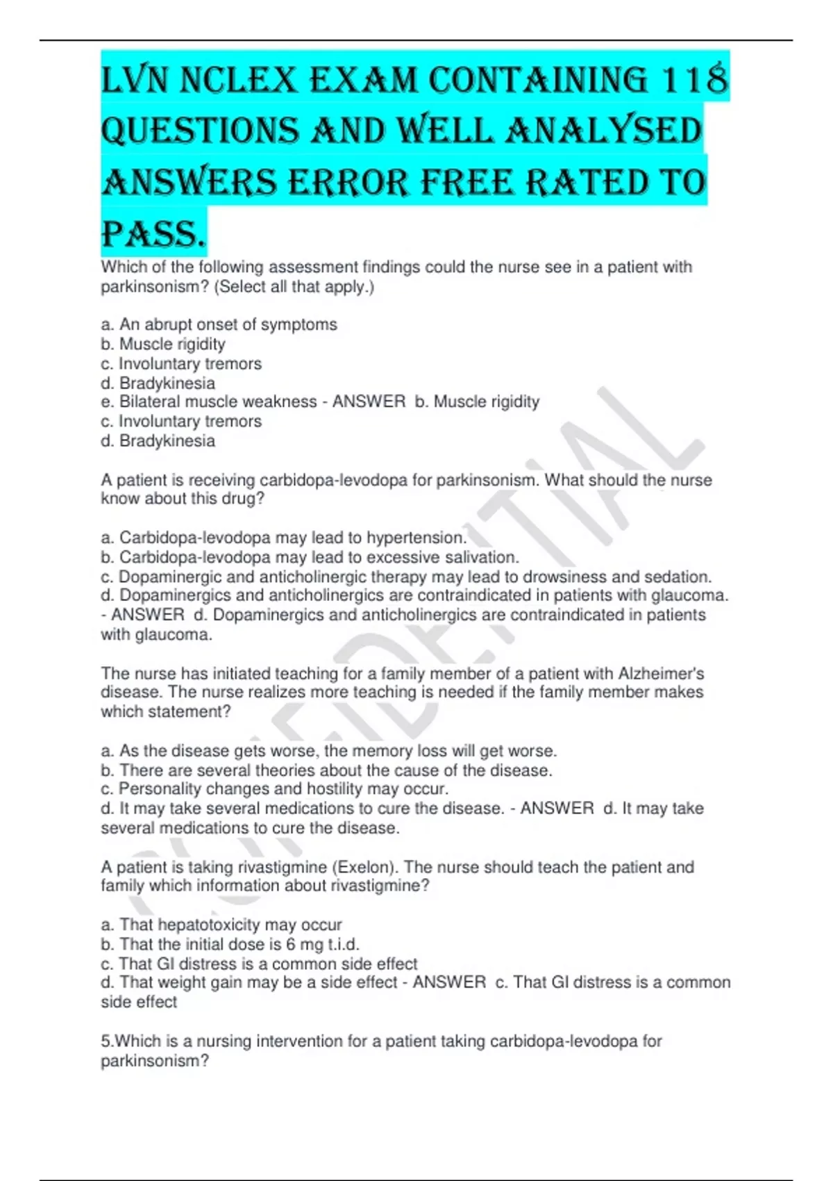 , LVN NCLEX EXAM CONTAINING 118