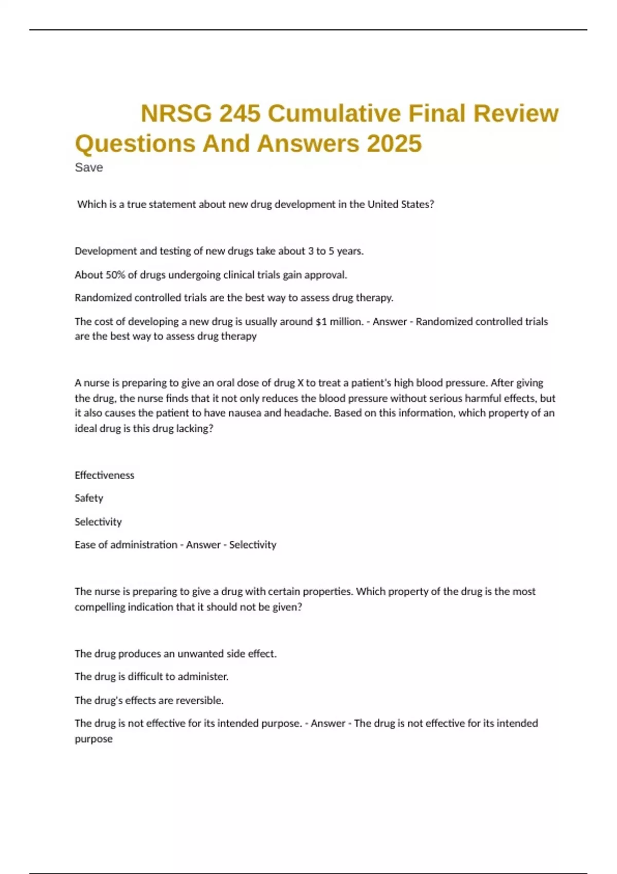 There is no such thing as a selective drug; all medications cause side effects. - Answer - Drugs are defined