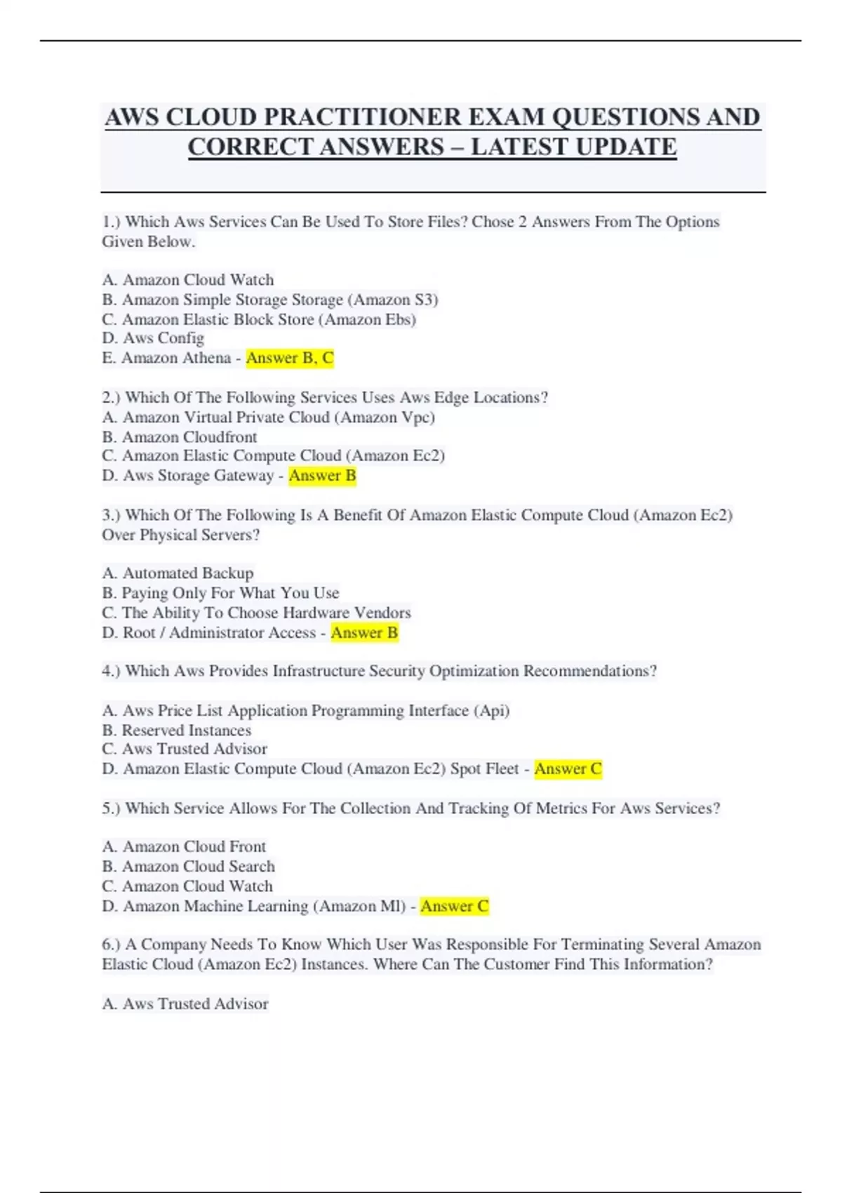 1.) Which Aws Services Can Be Used To Store Files? Chose 2 Answers From The Options