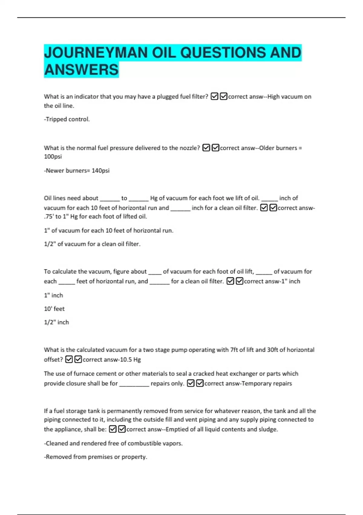 vacuum for each 10 feet of horizontal run and ______ inch for a clean oil filter. ✅✅correct answ-