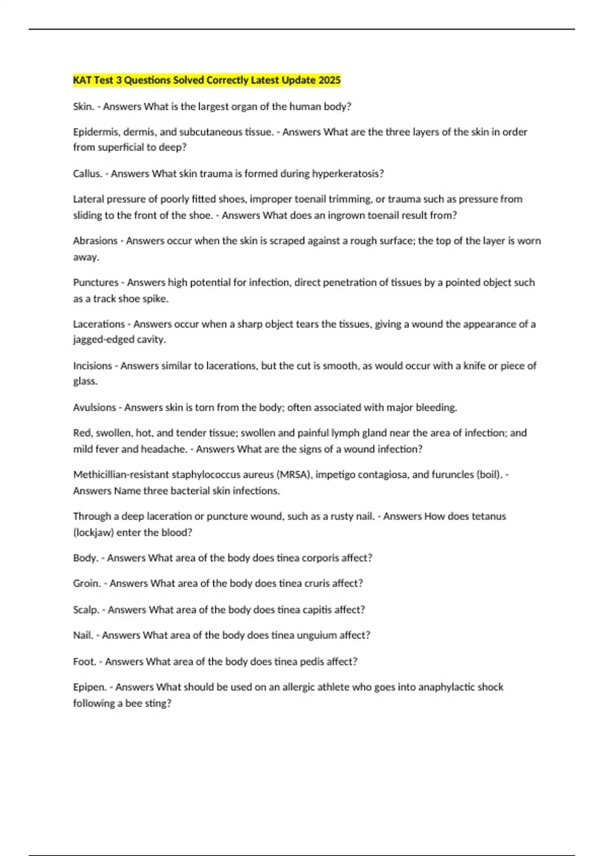 Lacerations - Answers occur when a sharp object tears the tissues, giving a wound the appearance of a