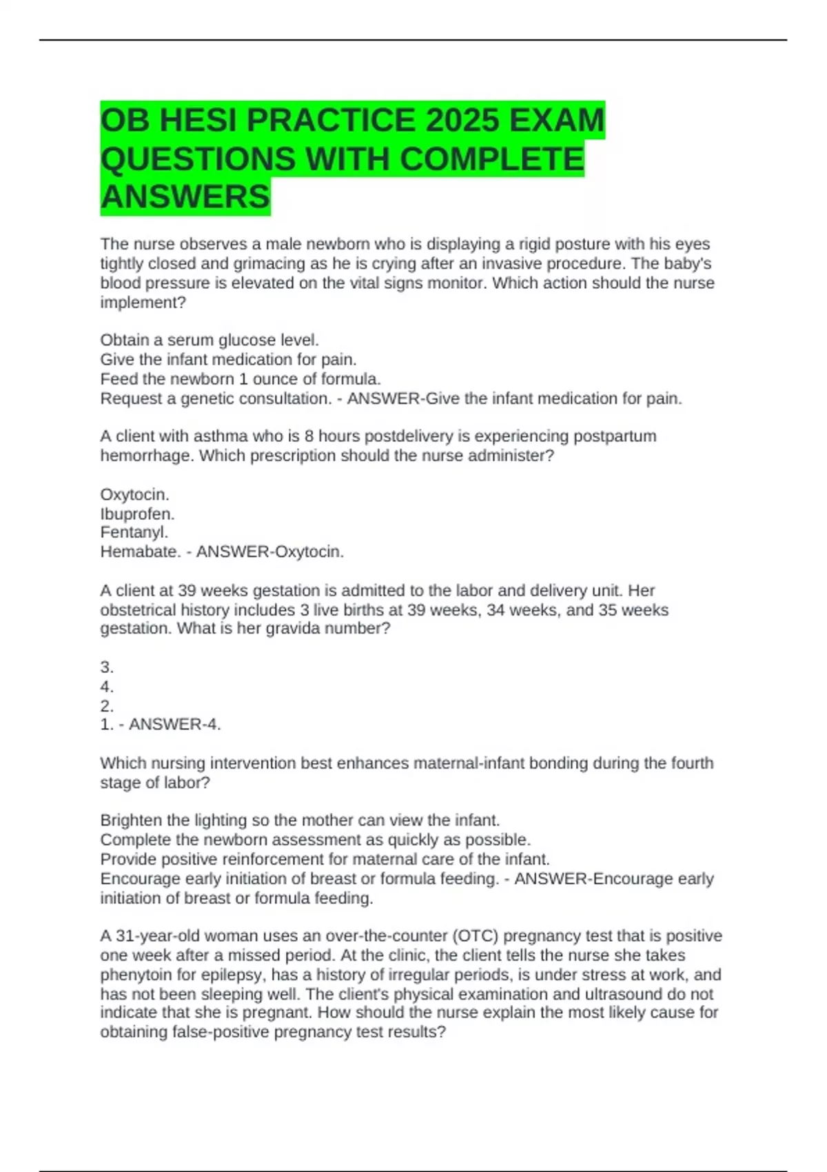 OB HESI PRACTICE 2025 EXAM