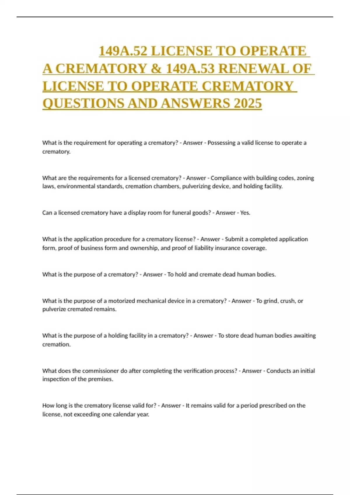 What is the requirement for operating a crematory? - Answer - Possessing a valid license to operate a