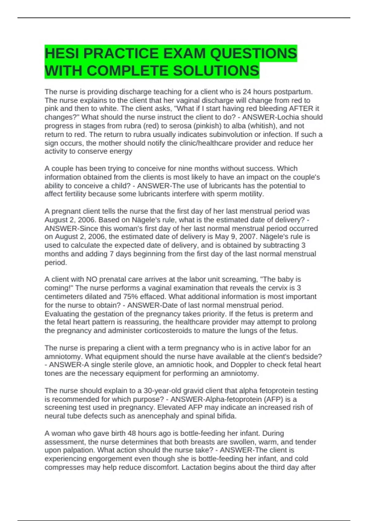 HESI PRACTICE EXAM QUESTIONS
