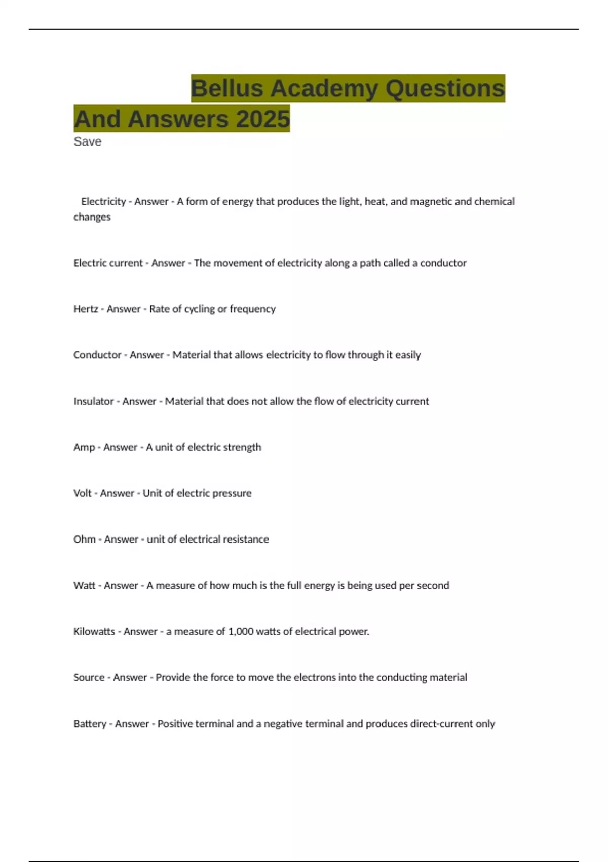 Kilowatts - Answer - a measure of 1,000 watts of electrical power.