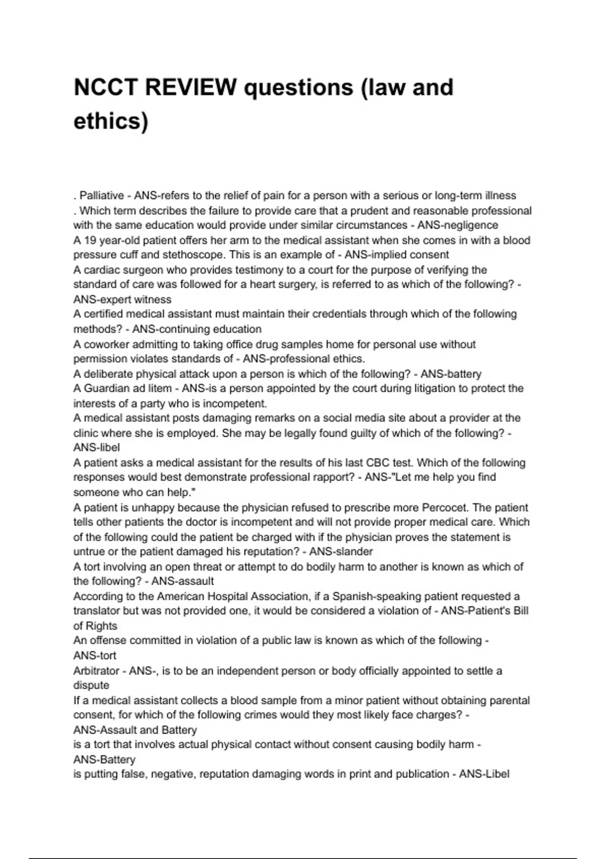 . Palliative - ANS-refers to the relief of pain for a person with a serious or long-term illness