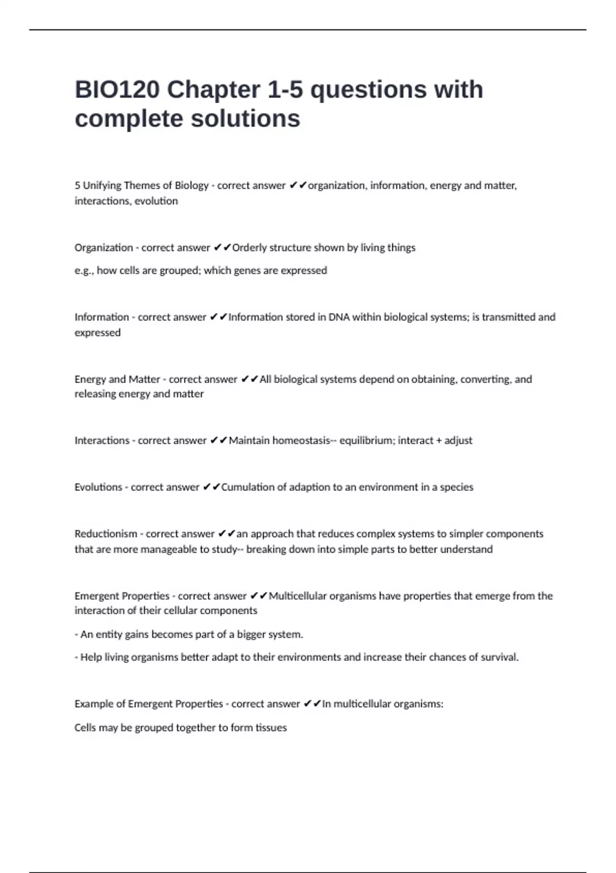 Emergent Properties - correct answer ✔✔Multicellular organisms have properties that emerge from the