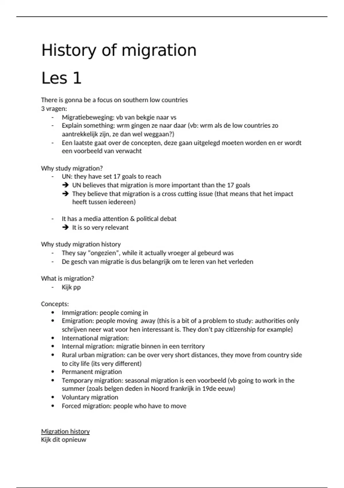Samenvatting - History of Migration (100% slaagkans)