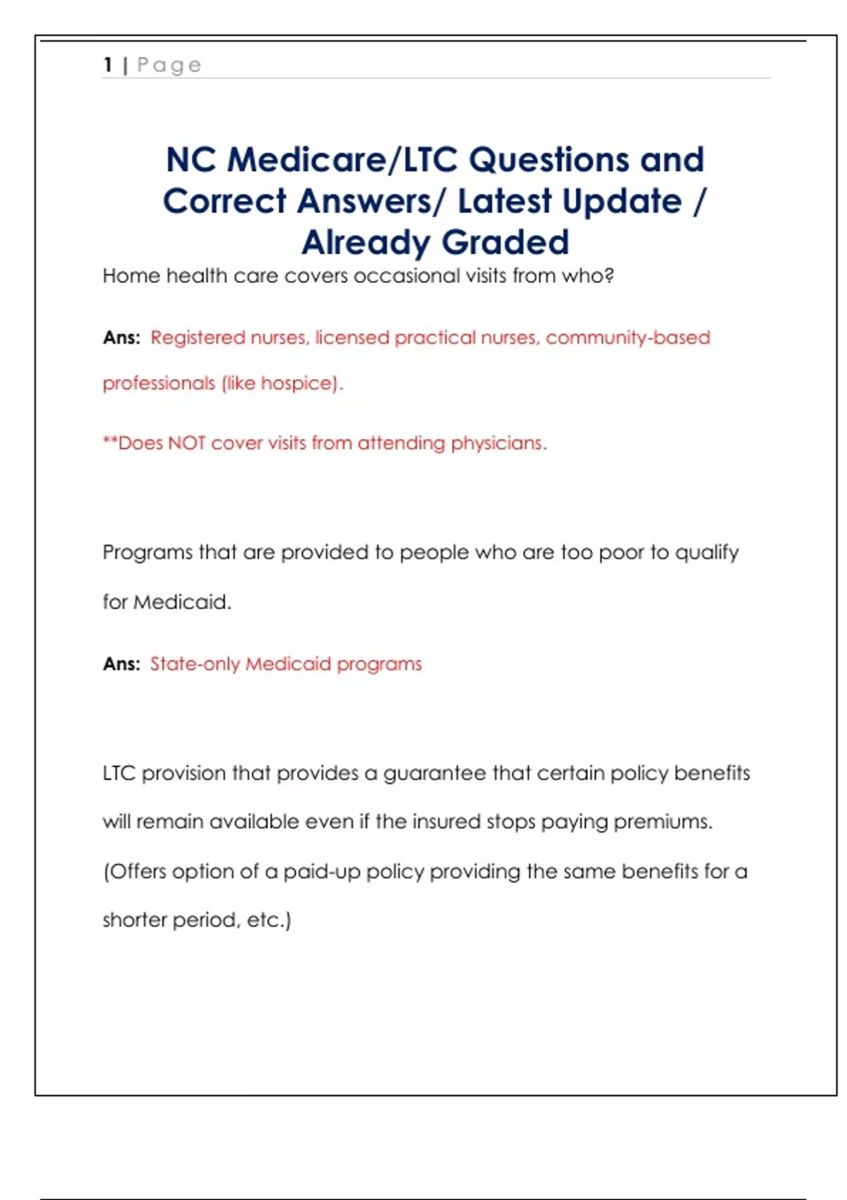 NC Medicare/LTC Questions and