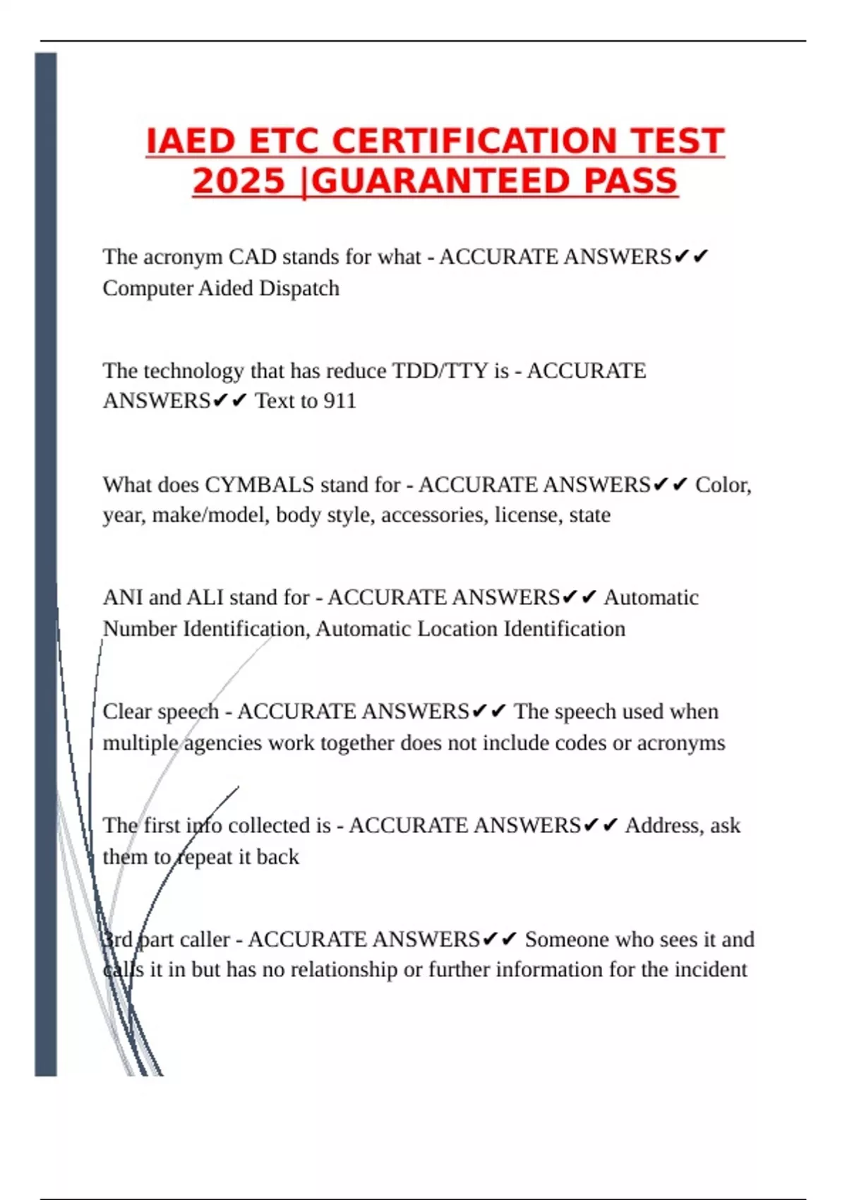 ANSWERS✔✔ Text to 911