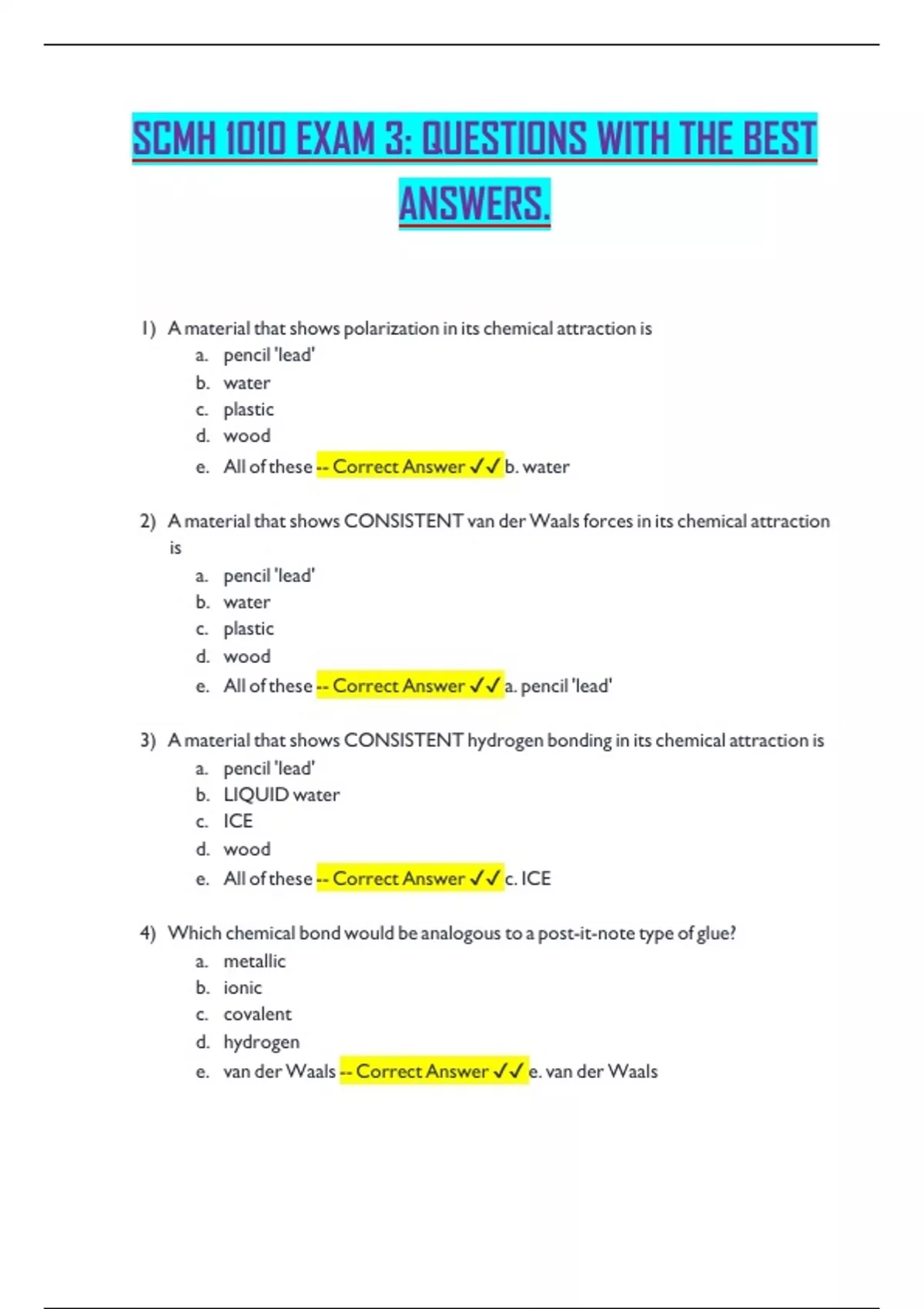 e. van der Waals -- Correct Answer ✔✔ e. van der Waals