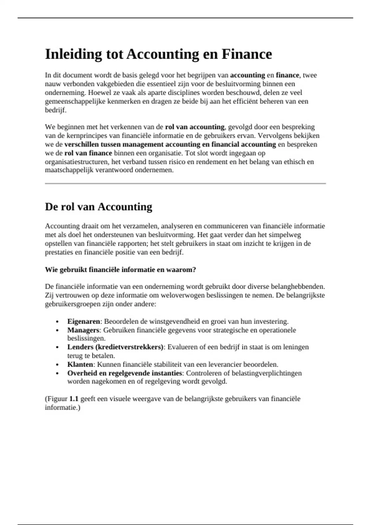 In dit document wordt de basis gelegd voor het begrijpen van accounting en finance, twee