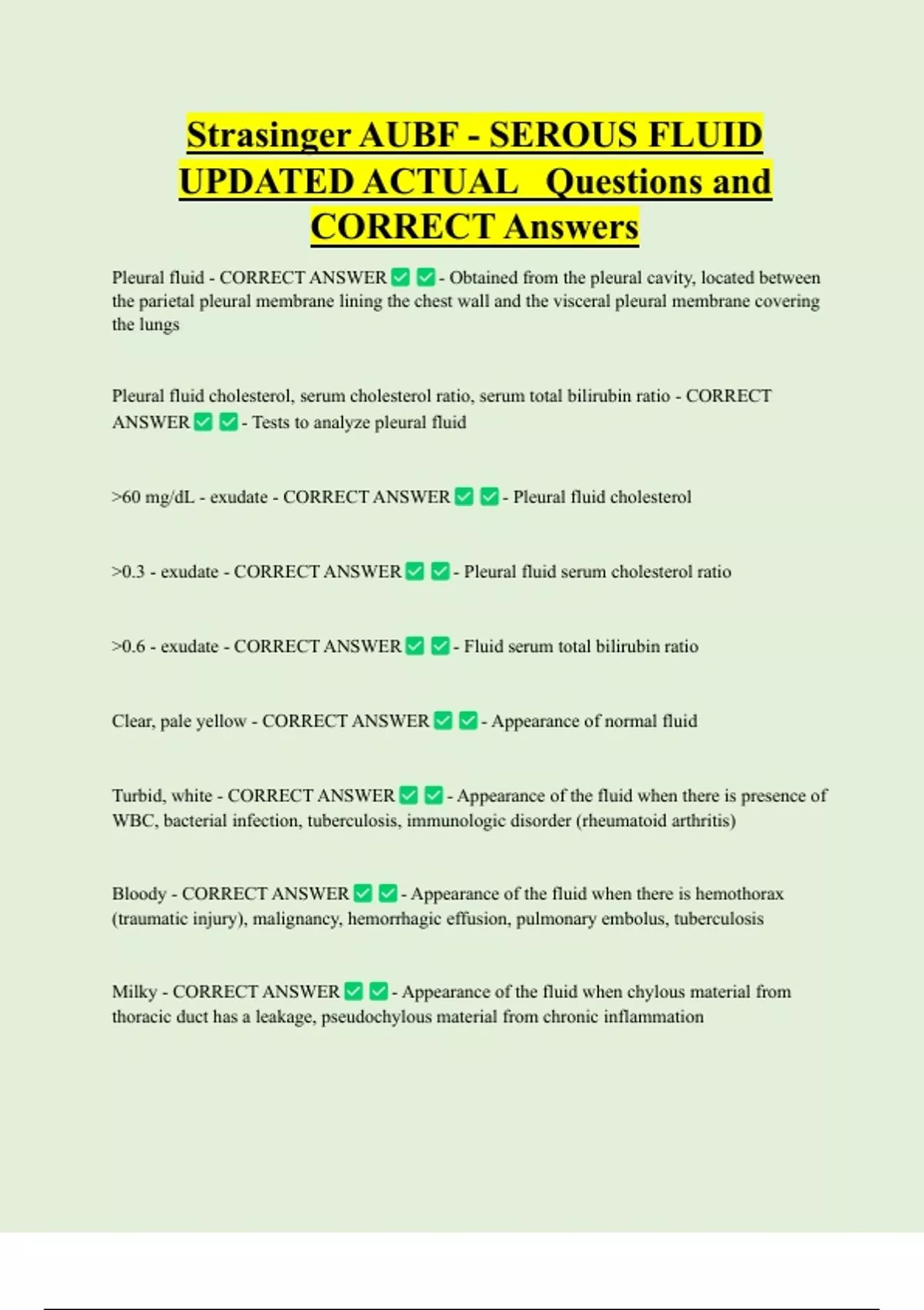 Pleural fluid - CORRECT ANSWER - Obtained from the pleural cavity, located between