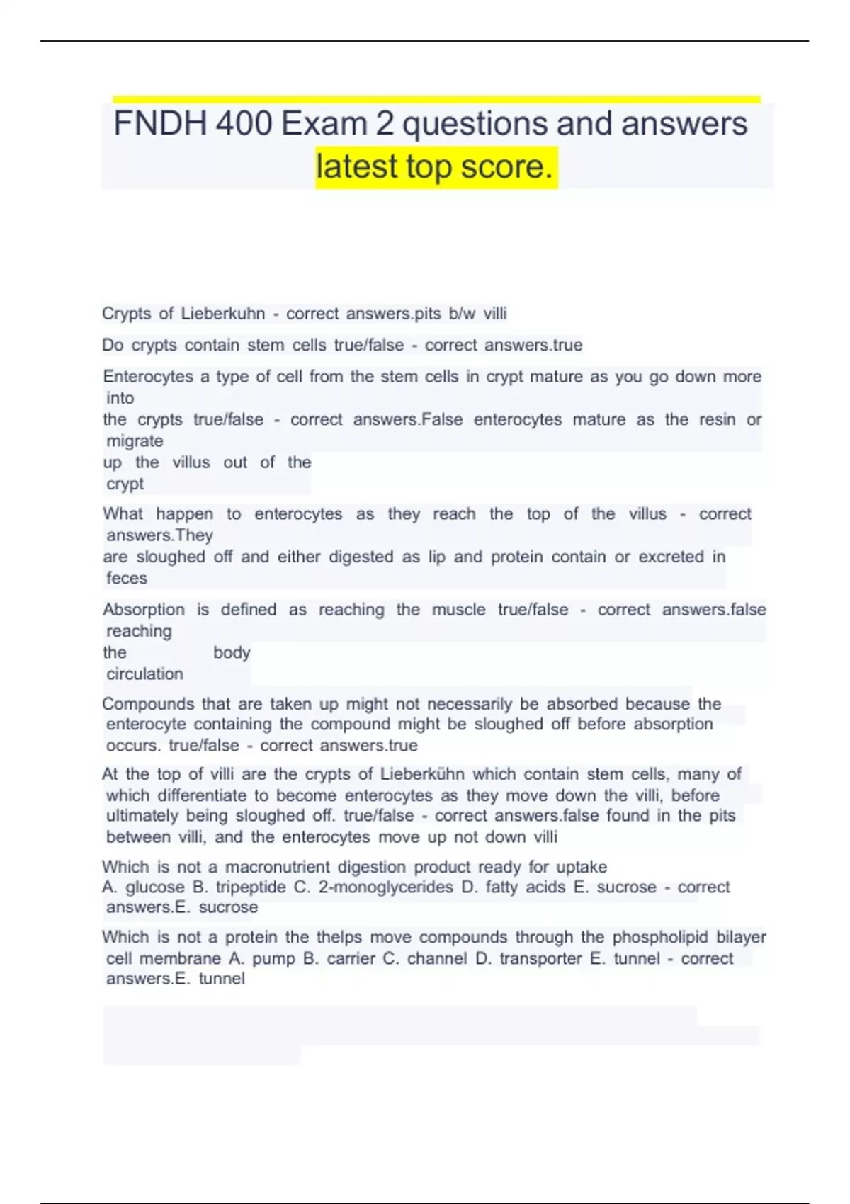 FNDH 400 Exam 2 questions and answers