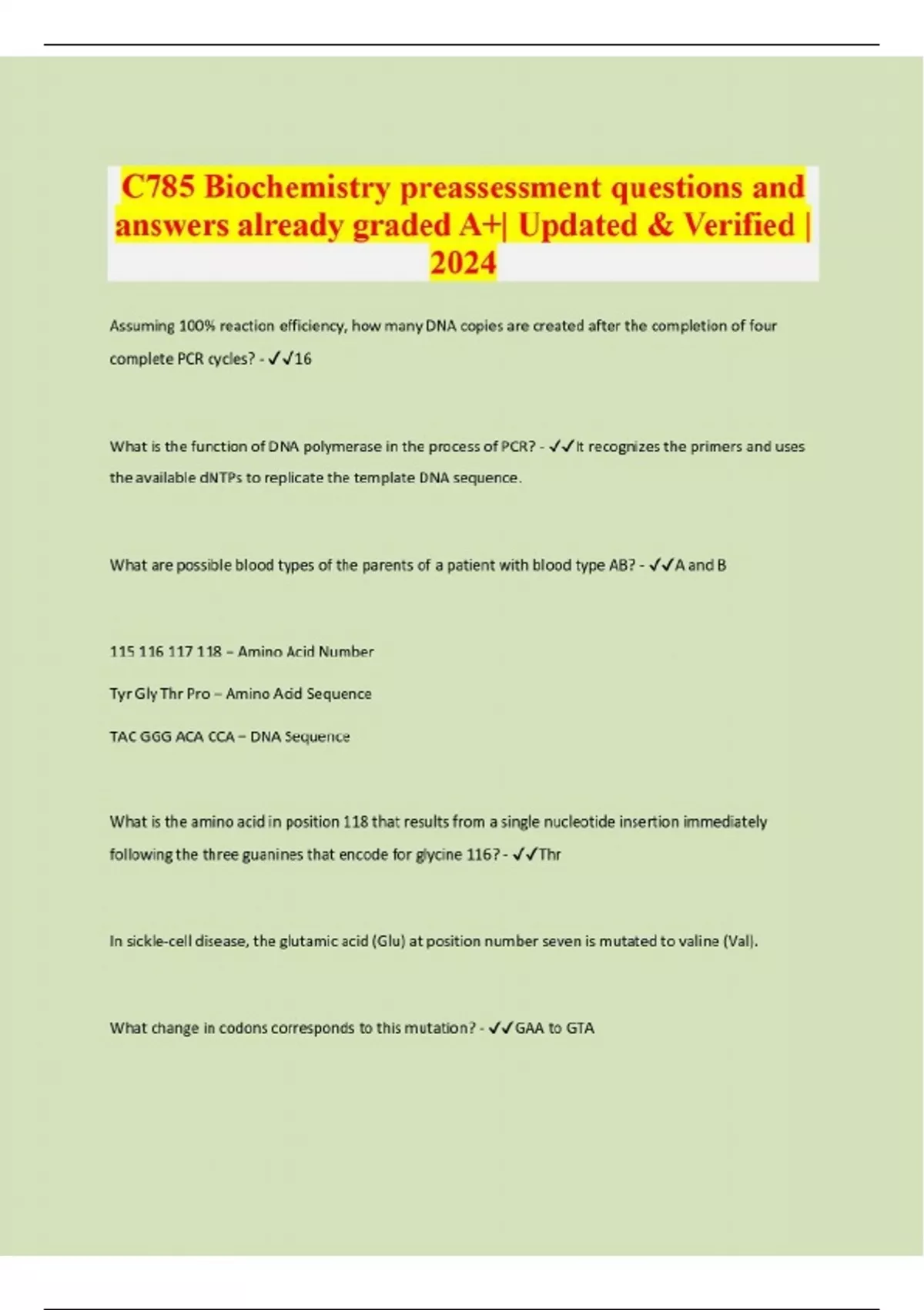 C785 Biochemistry preassessment questions and answers already graded A+| Updated & Verified |