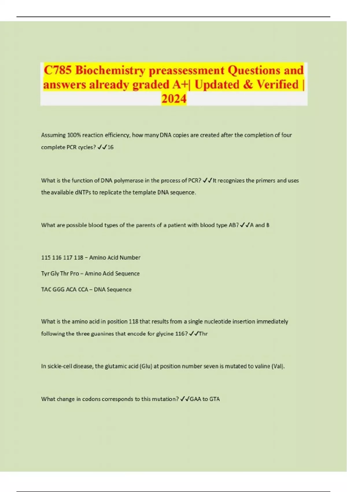 C785 Biochemistry preassessment Questions and answers already graded A+| Updated & Verified |