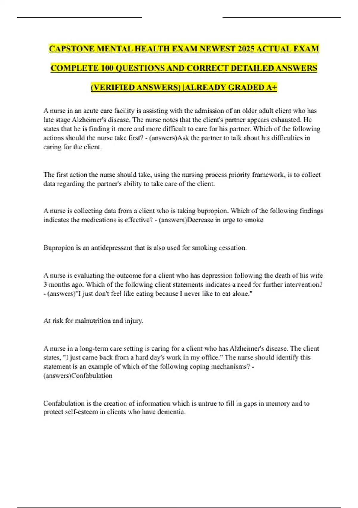 CAPSTONE MENTAL HEALTH EXAM NEWEST 2025 ACTUAL EXAM