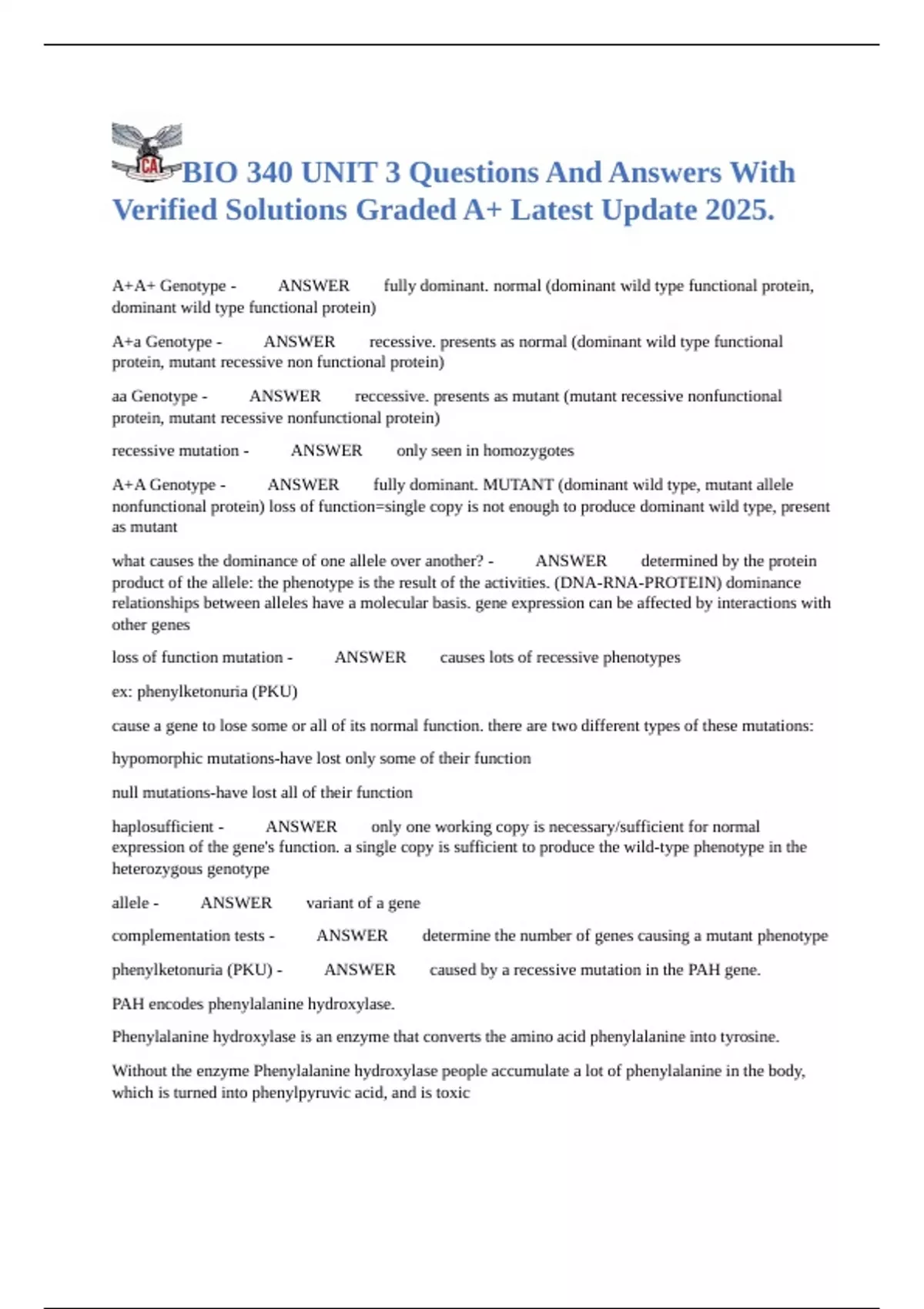 BIO 340 UNIT 3 Questions And Answers With Verified Solutions Graded A+ Latest Update 2025.