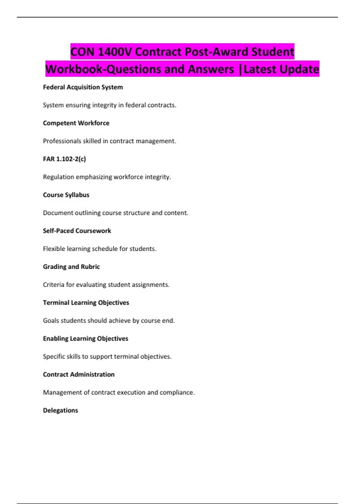 CON 1400V Contract Post-Award Student Workbook-Questions and Answers |Latest Update
