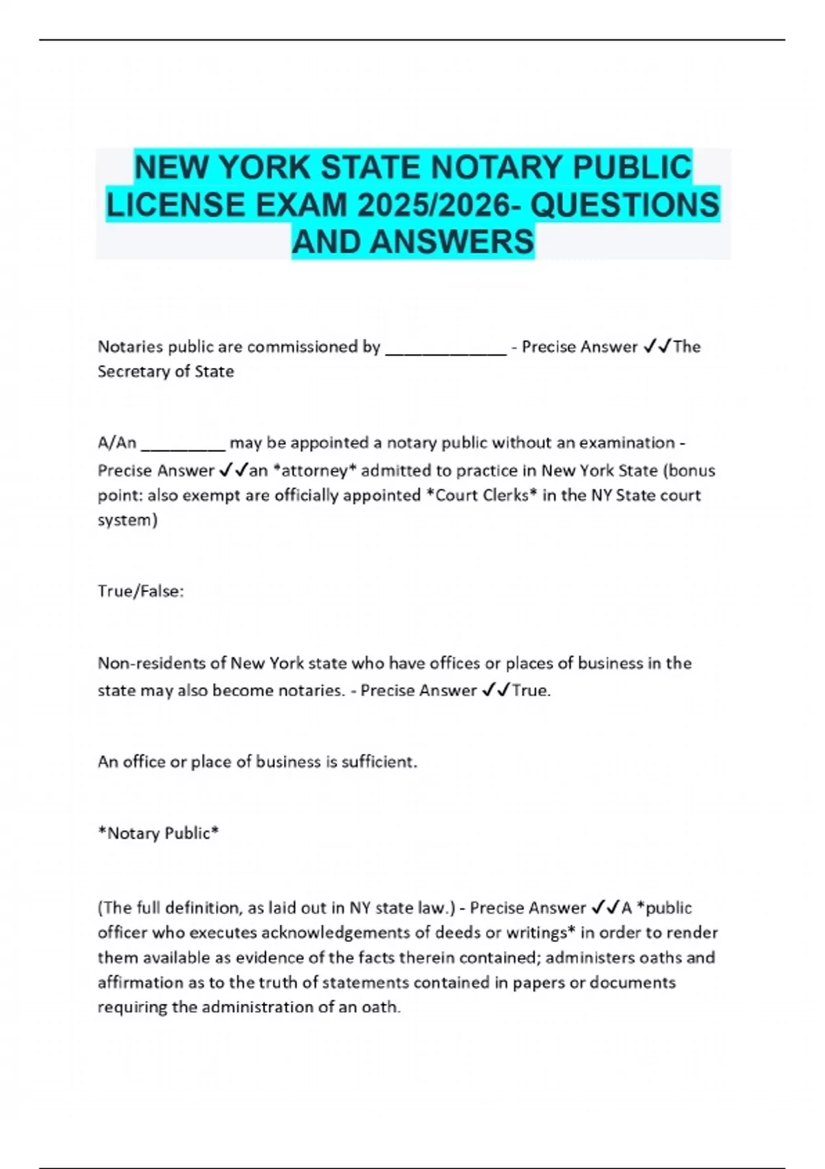 NEW YORK STATE NOTARY PUBLIC LICENSE EXAM 2025/2026- QUESTIONS AND ANSWERS