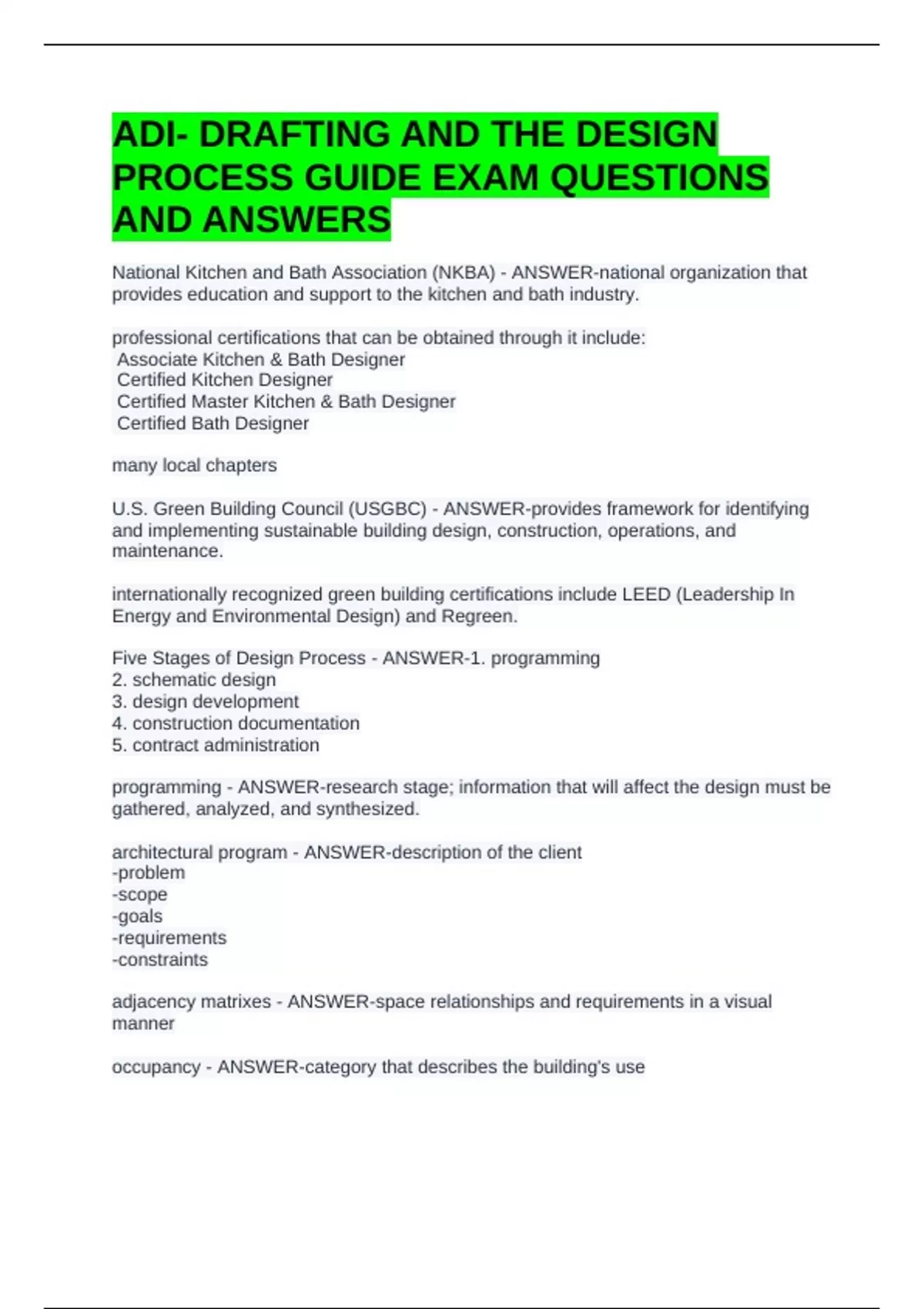 U.S. Green Building Council (USGBC) - ANSWER-provides framework for identifying