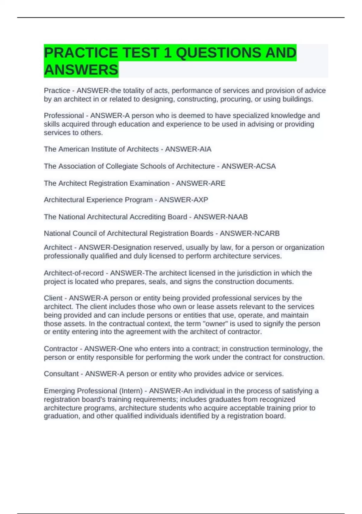 The Architect Registration Examination - ANSWER-ARE