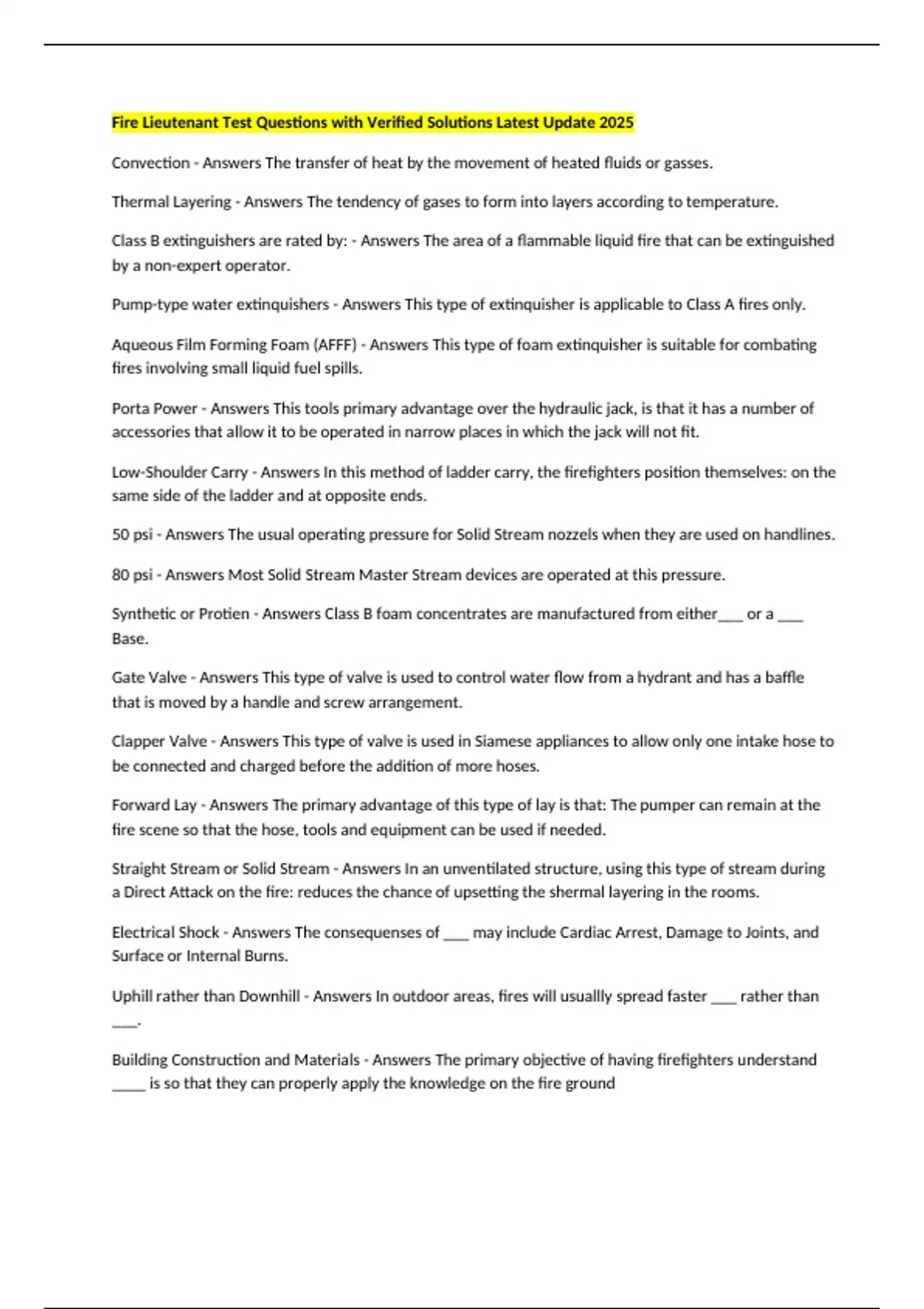 Building Construction and Materials - Answers The primary objective of having firefighters understand