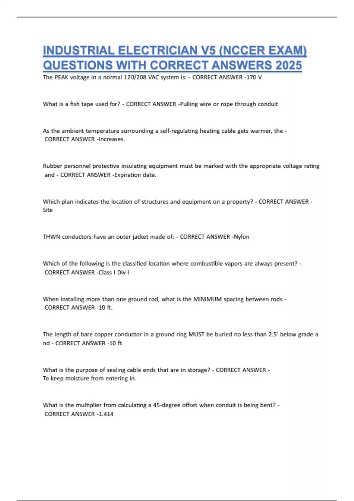 INDUSTRIAL ELECTRICIAN V5 (NCCER EXAM) QUESTIONS WITH CORRECT ANSWERS 2025