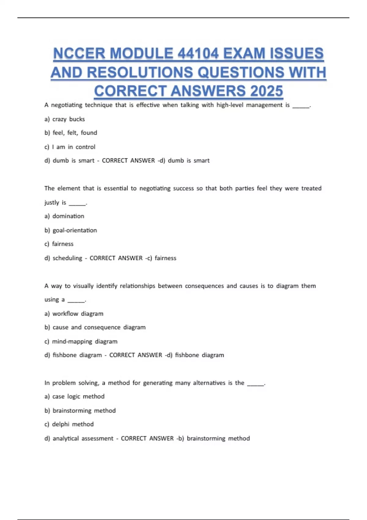 CORRECT ANSWERS 2025